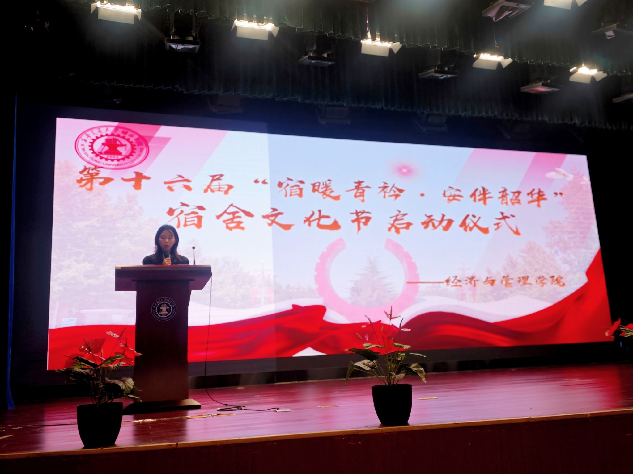 为筑牢校园安全防线,丰富宿舍文化生活,10月16日晚,经济与管理学院在教二报告厅召开第十六届“宿暖青衿·安伴韶华”宿舍文化节暨安全教育月启动仪式。院长助理刘健、学生第二党支部书记李璐、团工委书记柯智航、学生科史青、张德馨、刘海盟及大一大二全体学生代表参加活动。