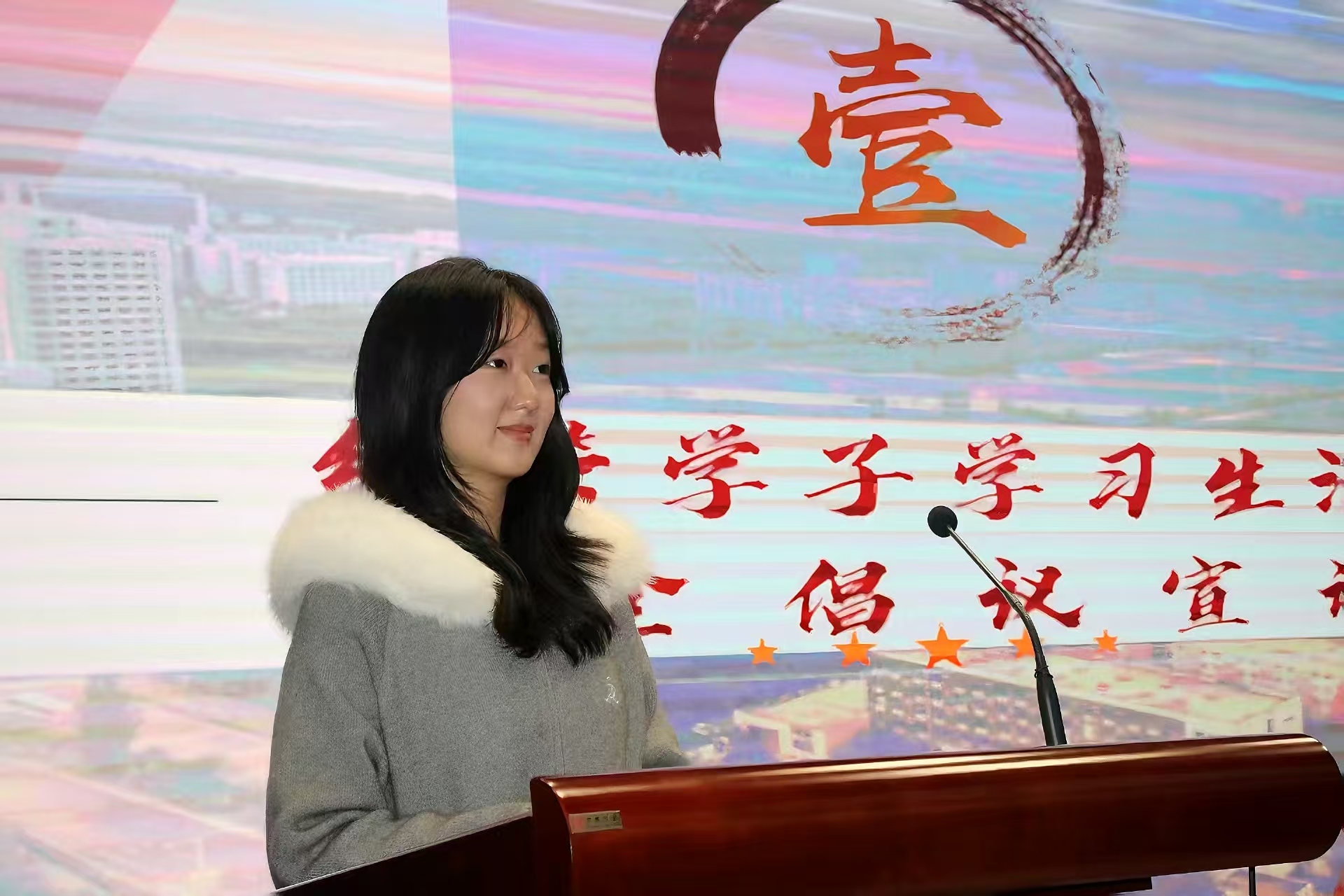 仪式伊始,学院学生会主席彭梓媛上台,宣读《经管学子学习生活安全倡议书》。倡议书中从学习、生活、出行等多维度出发,号召全体经管学子树立安全意识,规范日常行为,共同营造平安和谐的校园环境。