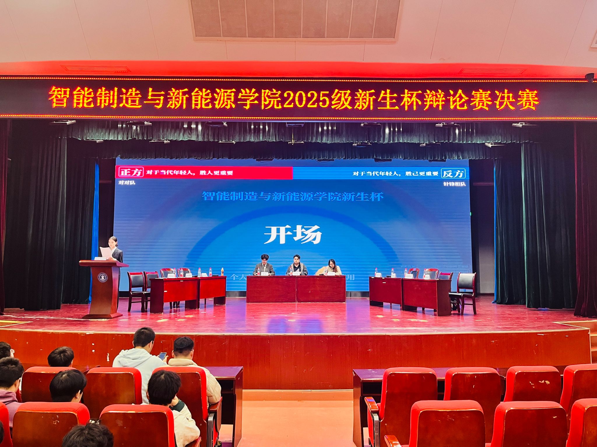 智能制造与新能源学院于10月26日晚在教二报告厅举办2025级新生杯辩论赛决赛。