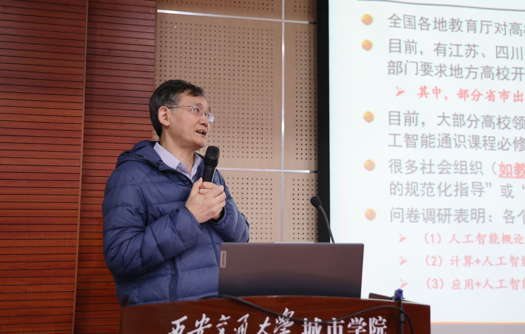 11月13日上午,由物联网智能感知交互平台陕西省高校工程研究中心、西安交通大学城市学院计算机学院主办的“AI赋能计算机通识教育”专题讲座在F100报告厅举行。本次讲座由西安交通大学博士生导师、计算机国家教学实验示范中心主任、物联网与信息安全研究所所长桂小林教授主讲,西安理工大学计算机科学与工程学院副院长费蓉,西安交通大学城市学院计算机学院院长姚全珠、教学科研部副部长康彦青、计算机学院副院长许大炜、计算机学院院长助理范丽亚、相关教师以及各年级学生代表参加会议。讲座由姚全珠主持。