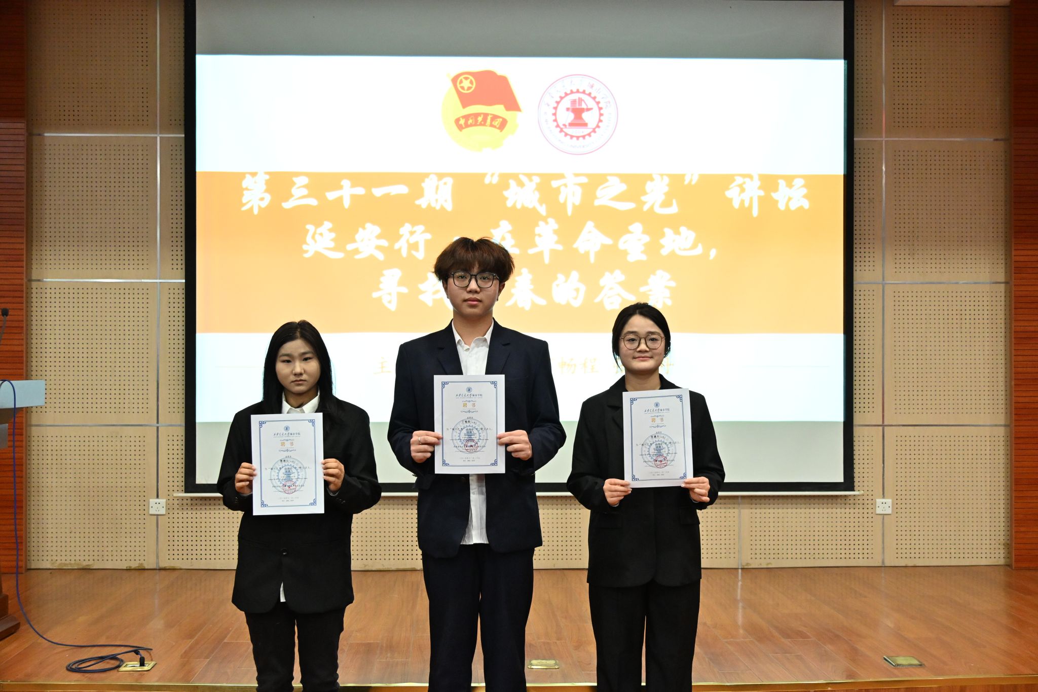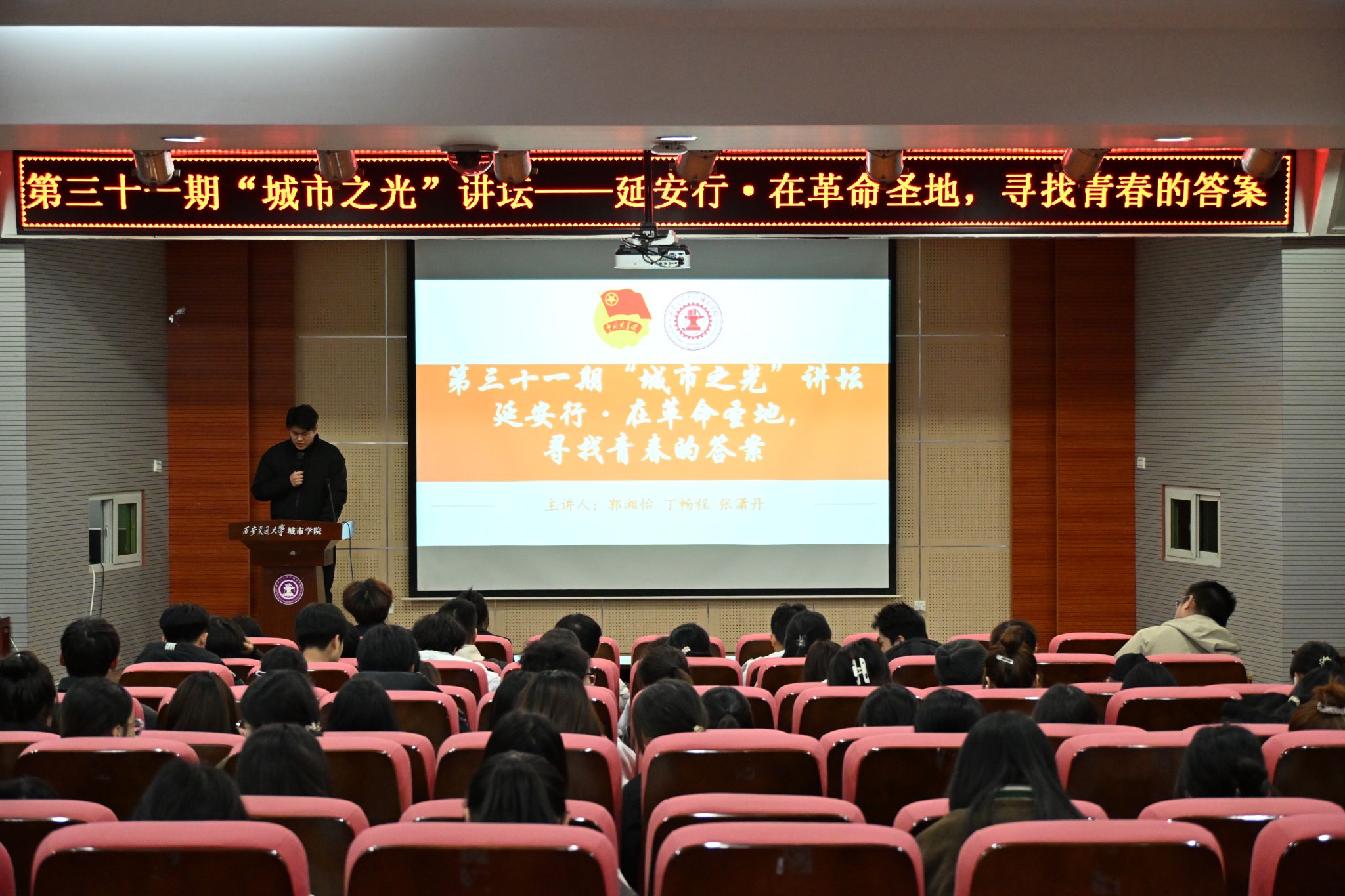 11月20日,第三十一期“城市之光”讲坛举行。本期讲坛以“延安行・青年说在革命圣地,寻找青春的答案”为主题,特邀郭湘怡、丁畅程、张潇丹三位优秀城院学子先后登台,分享延安红色实践中的探索历程与深刻感悟,200余名同学现场参与,共同沉浸式感受革命精神的力量。