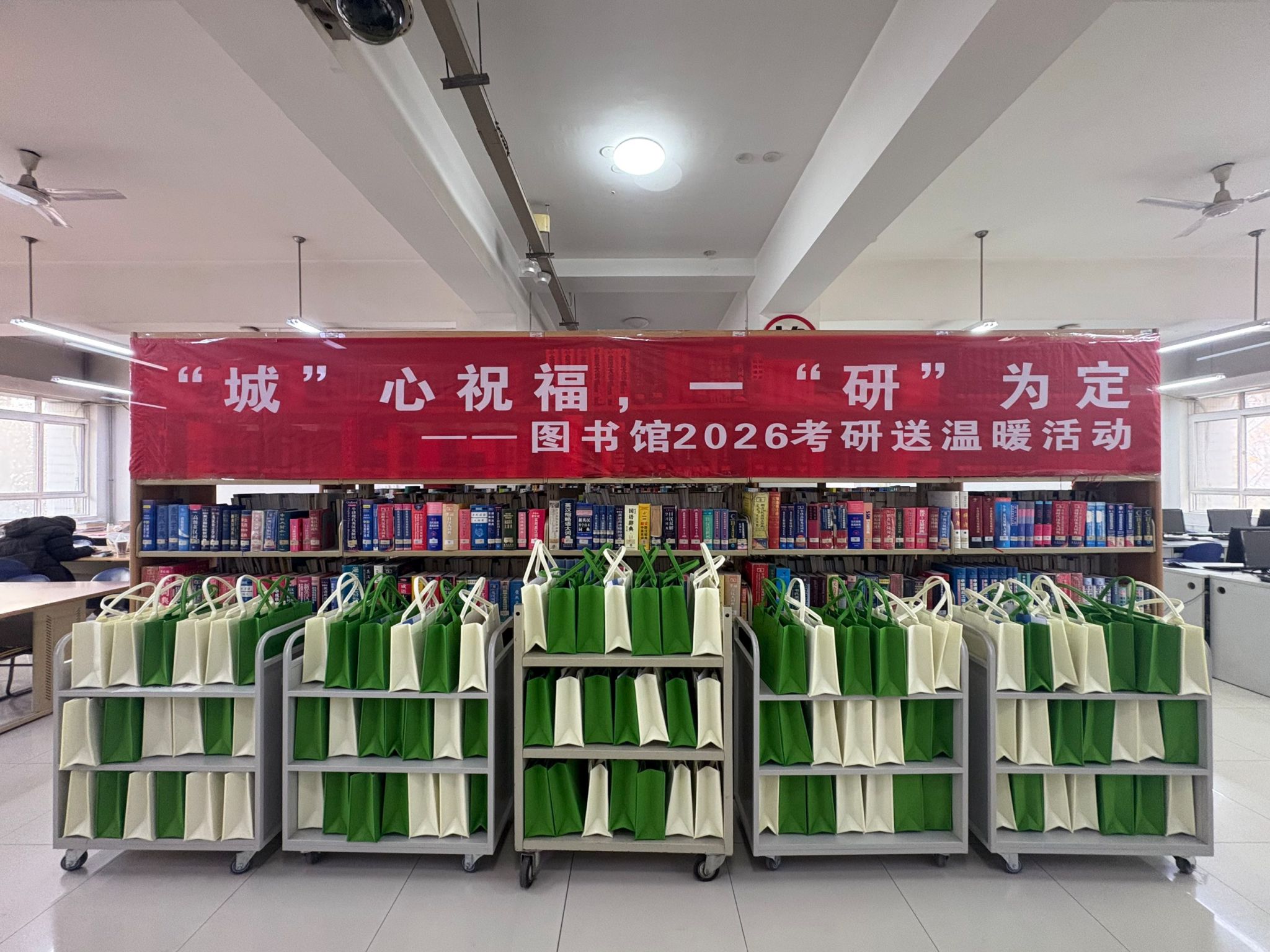 活动现场,“‘城’心祝福,一‘研’”为定的红色横幅格外醒目,标语巧妙化用谐音,既嵌入了学校名称中的“城”字,又以一“研”为定寄托对学子坚定目标、终抵彼岸的殷切期望。整齐摆放的加油礼包内容丰富实用,包含精心准备的备考资料、文具用品及定制纪念品,寄托着对学子们的深切关怀。尽管天气寒冷,但考研学子们的热情不减,陆续来到活动现场,在工作人员引导下有序领取礼包。