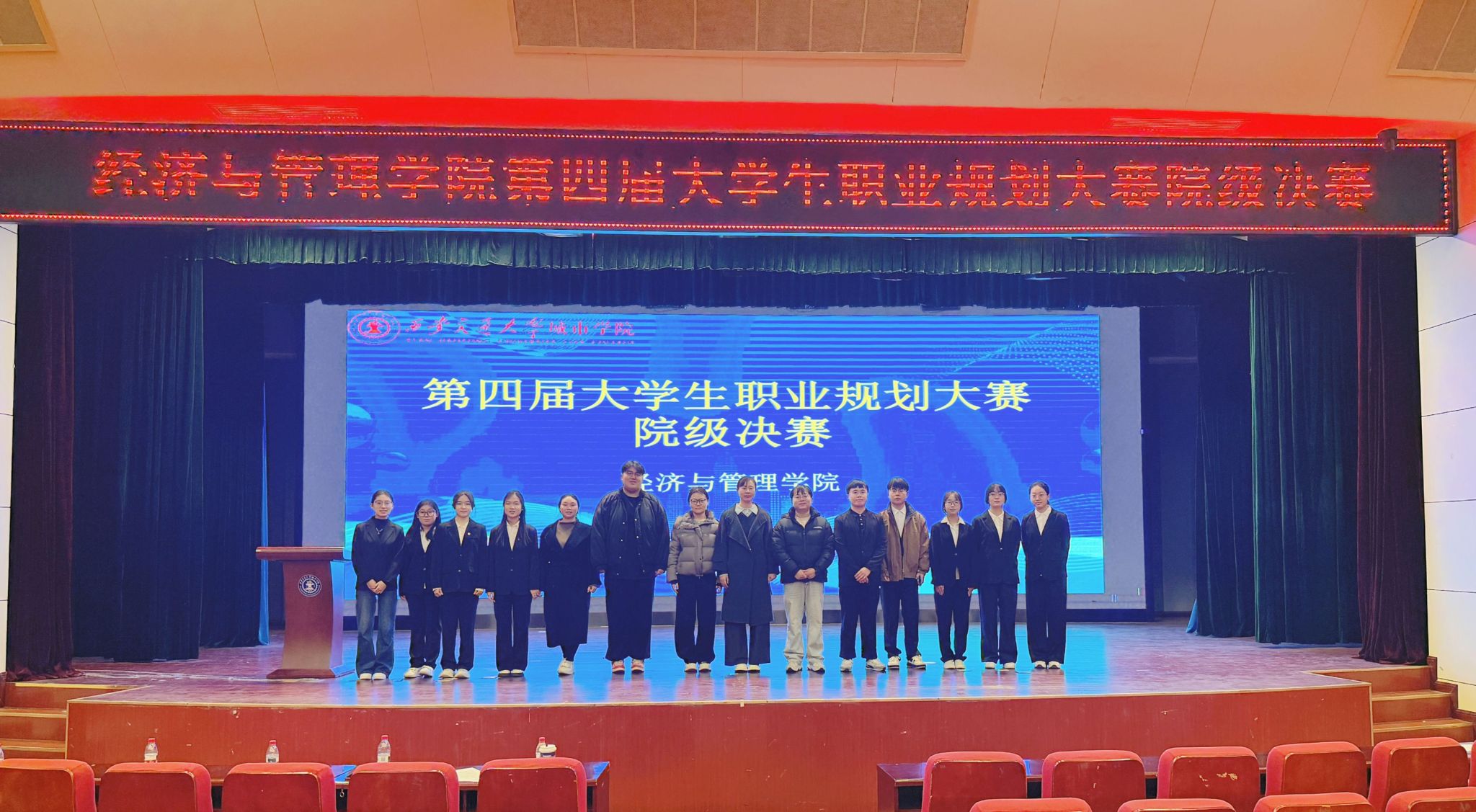 12月10日晚,经济与管理学院第四届大学生职业规划大赛院级决赛在教二报告厅落幕,院长助理刘健、团工委书记柯智航、辅导员康轲岚、张天源、刘连宏担任评委,学院师生代表共同见证了选手们的精彩表现。