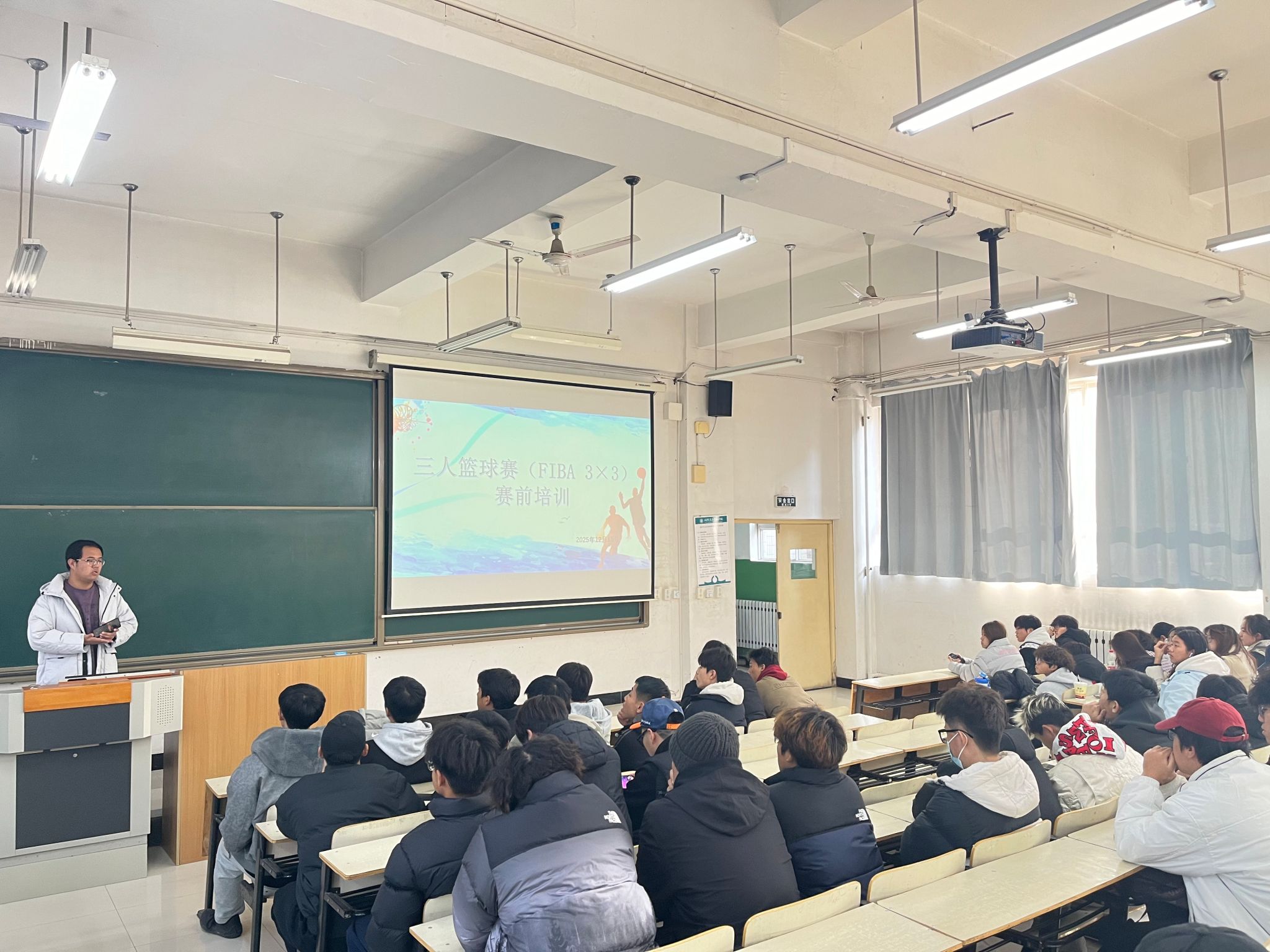12月15日,由通识教育学院主办,体育教学部、校团委、校篮球协会共同承办的第四届三对三篮球赛领队联席会暨FIBA(国际篮联)三人篮球比赛规则培训会在教学楼D100举行。篮协指导教师苏洋出席会议,校男女篮全体队员、篮协全体成员以及各参赛学院的领队、教练员和运动员代表共同参加了本次会议。会议旨在全面解读赛事规程,统一竞赛标准,确保本届三对三篮球赛在专业、规范、公平的氛围中精彩上演。