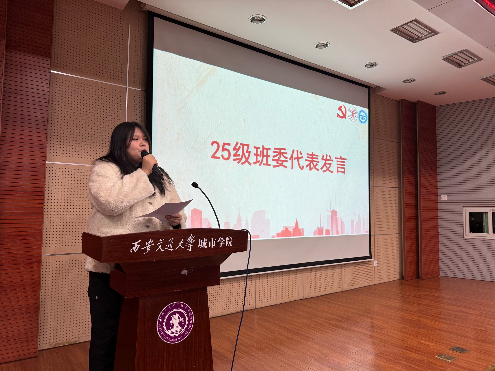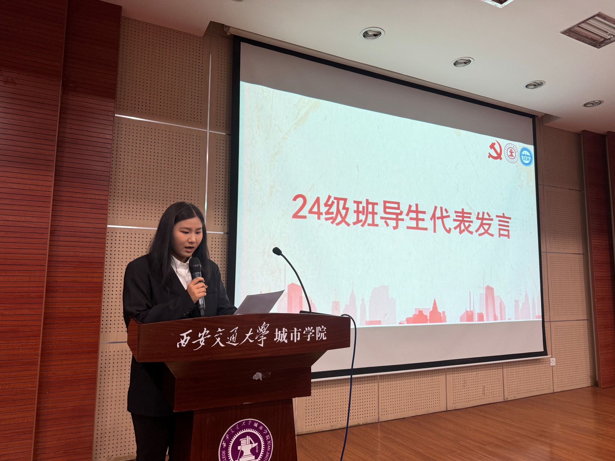 2025级班委代表会计2506班学习委员田芷葳同学发言。她结合日常观察与新生反馈,系统梳理了新生在学习方法、时间管理、专业认知、校园适应等方面存在的普遍困惑,为班导生工作的精准开展提供了重要参考。
