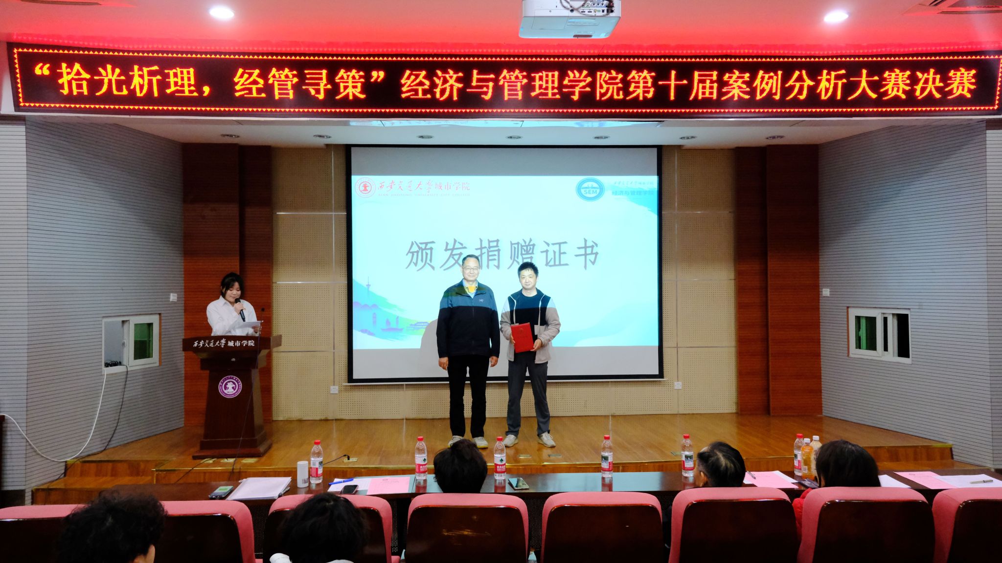 12月24日晚,经济与管理学院第十届“拾光析理,经管寻策”大学生案例分析大赛决赛举办。经过初赛、复赛的层层选拔,6支队伍脱颖而出进入决赛,展开精彩角逐。校长助理、财务处处长马江涛,经济与管理学院负责人及教师代表、学生代表参加活动。