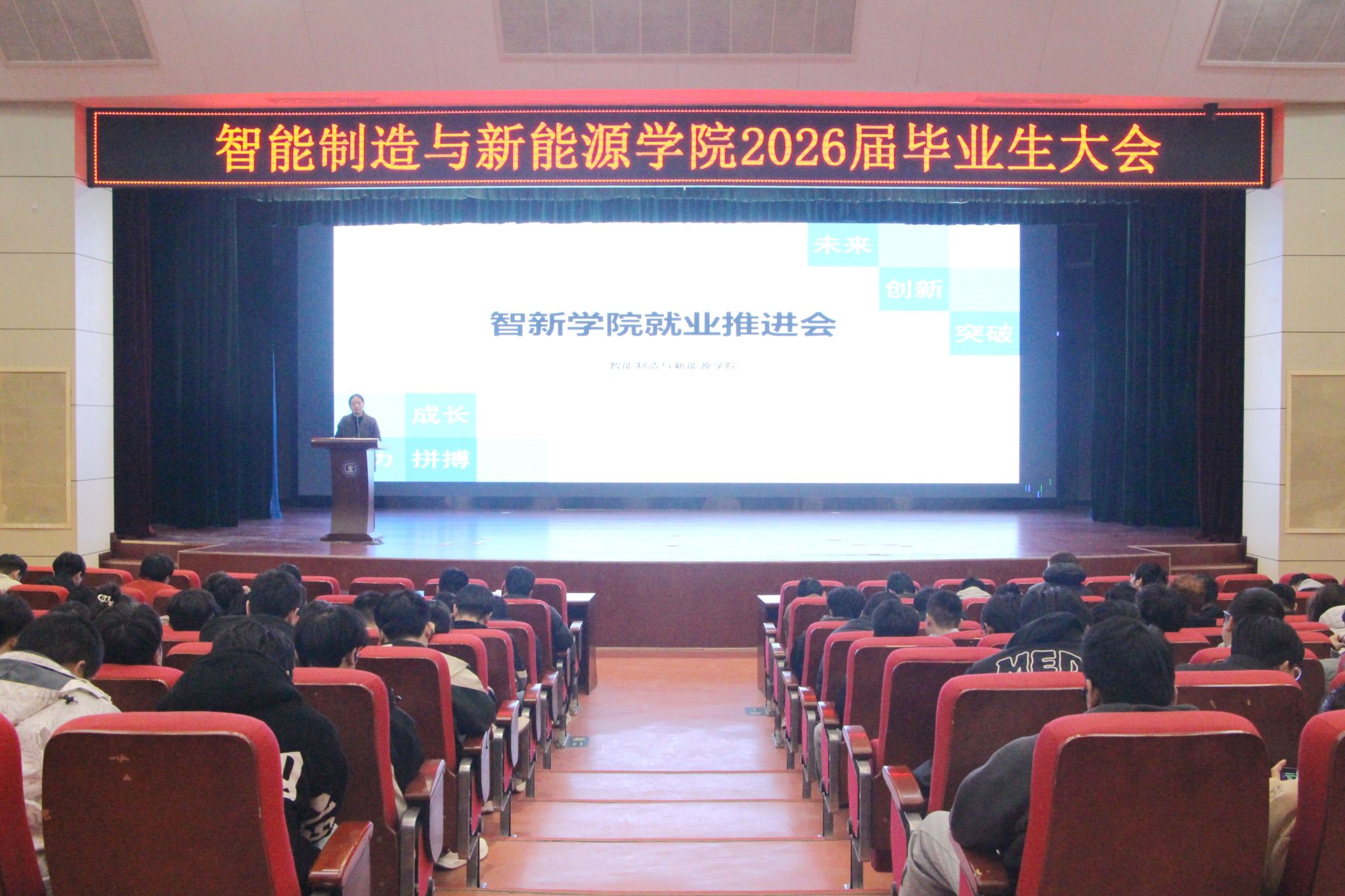 为帮助2026届毕业生精准把握毕业关键节点,明晰学业要求与就业方向,3月12日,智能制造与新能源学院召开2026届毕业生大会。学院院长助理门静、王丽丽及全体毕业班学生齐聚一堂,共同为毕业季的学业收尾与职业规划筑牢基础。大会由毕业班辅导员史晓薇主持。