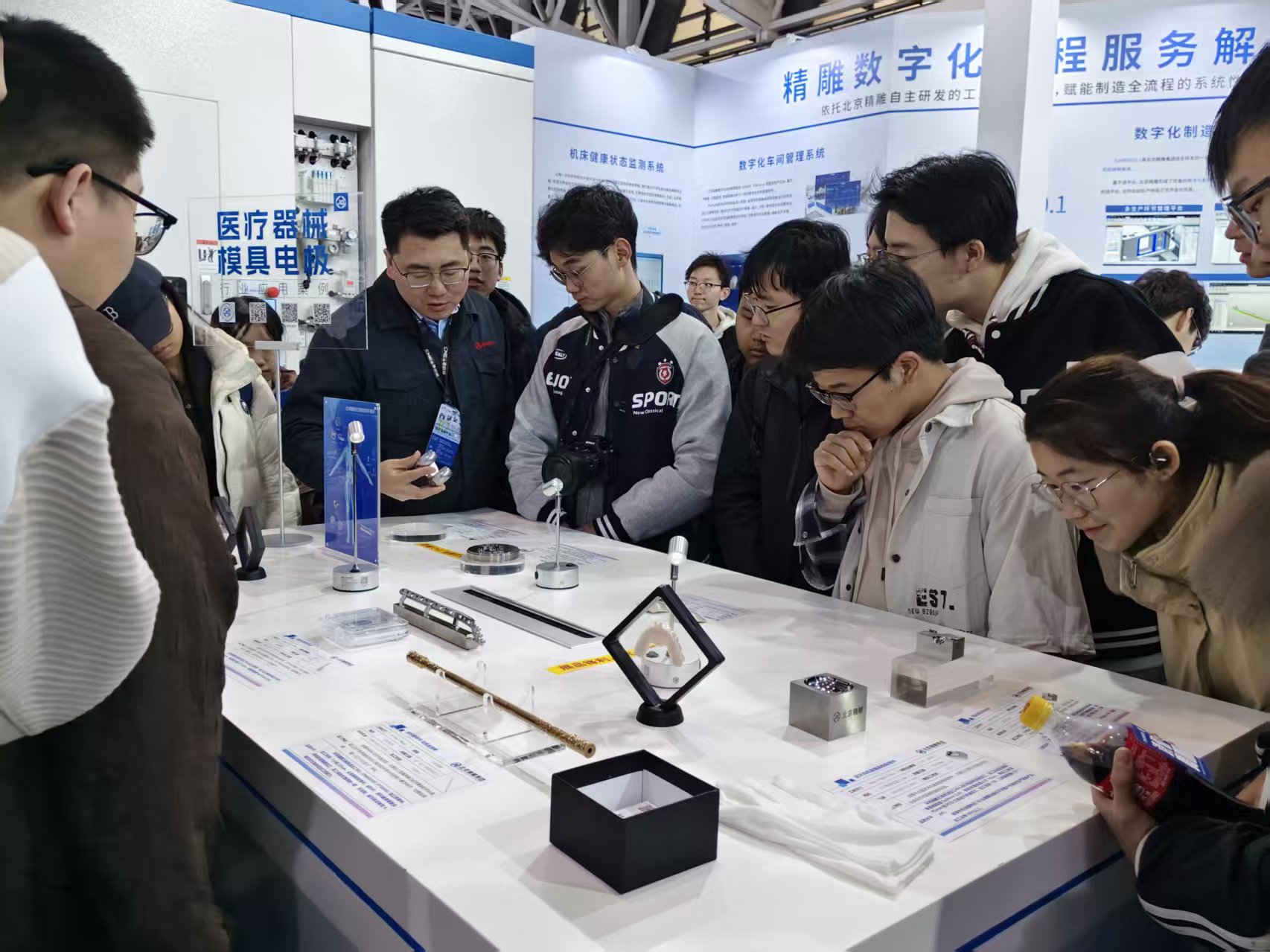 本届展会以“金属加工+智能制造”为主题,汇聚了马扎克、北京精雕、海天精工、宝鸡机床等700余家国内外知名品牌,集中展示了五轴加工中心、车铣复合机床、工业机器人及自动化产线等高端装备。展会现场,师生们重点观摩了面向航空航天、新能源汽车等领域的精密加工解决方案。参观过程中,老师们结合专业知识,为学生现场讲解设备原理与应用。在工业机器人展区,师生们就机器视觉与自动化产线集成问题与企业技术人员进行了深入交流,老师们鼓励学生大胆提问,并帮助梳理技术逻辑。这样的互动场景贯穿整个观展过程,现场学习氛围浓厚。