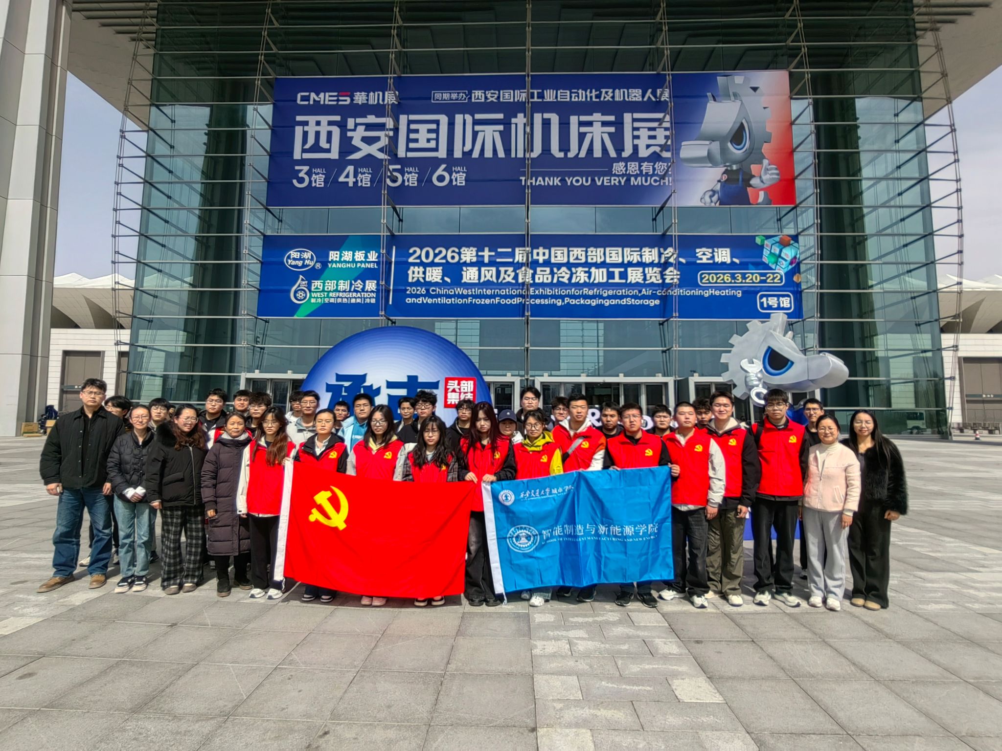 为深化产教融合,拓宽学生专业视野,近距离接触全球前沿机床技术与智能制造成果,激发创新思维,智能制造与新能源学院学生党支部联合教工党支部于3月18日组织师生赴西安国际会展中心参加2026年西安国际机床展(CMES华机展)。本次活动由智能制造与新能源学院教工党支部书记李娜娜、学生党支部组织委员史晓薇带队,教工支部党员代表及学生支部30余名党员、入党积极分子共同参与。