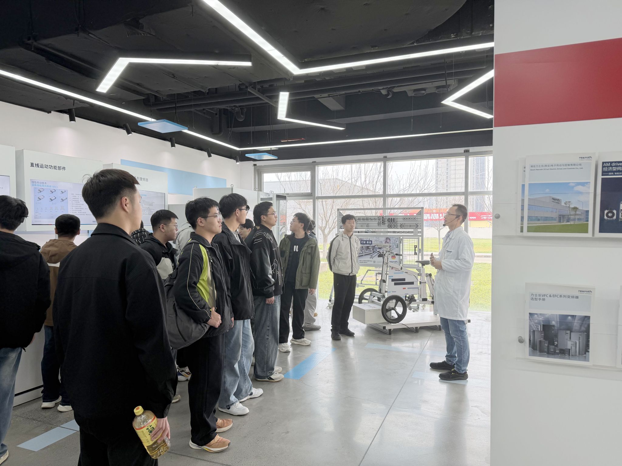为深化校地企协同育人机制,扎实推进访企拓岗促就业专项行动,助力学子精准对接产业前沿技术与优质就业岗位,3月25日,经开区团工委联合学校团委共同开展“引航计划—青年学子经开企业行”系列活动。智能制造与新能源学院师生代表走进博世力士乐(西安)电子传动与控制有限公司,实地探访企业发展脉络、精准对接人才需求、拓宽校企合作渠道,推动产学研深度融合走深走实、见行见效。