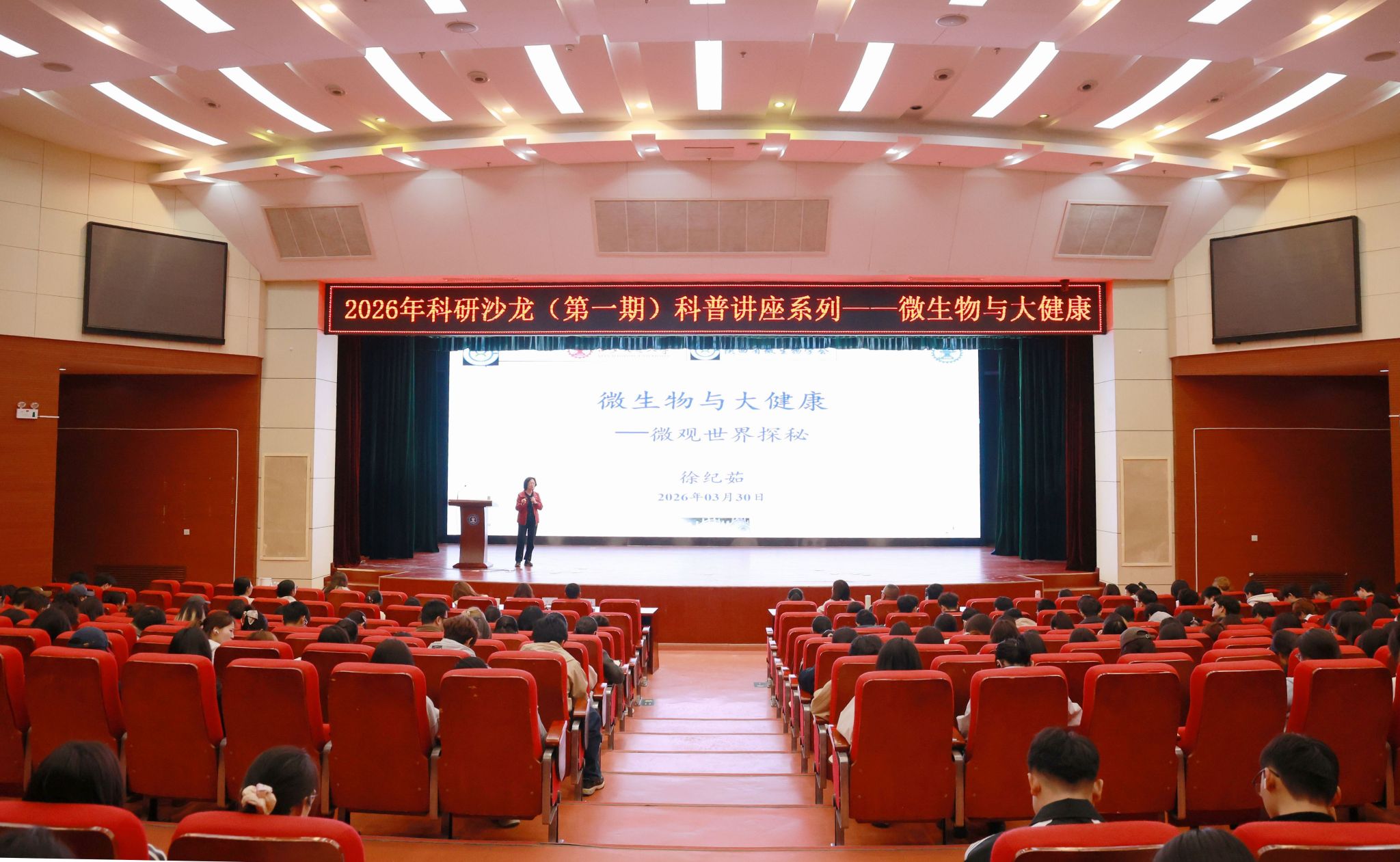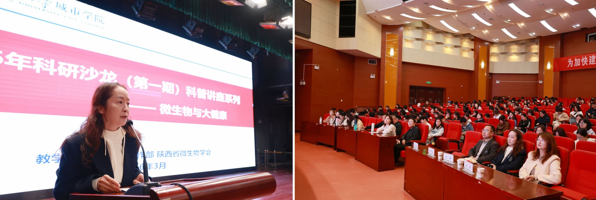 为弘扬科学家精神,丰富校园科技文化生活,提升学生素养,普及微生物学知识,3月30日,教学科研部与党委工作部联合组织开展“微生物与大健康”专题讲座。本次讲座特邀陕西省微生物学会专家徐纪茹教授主讲,教学科研部副部长刘静主持。党委工作部部长霍伟森、副部长茹静参加活动。