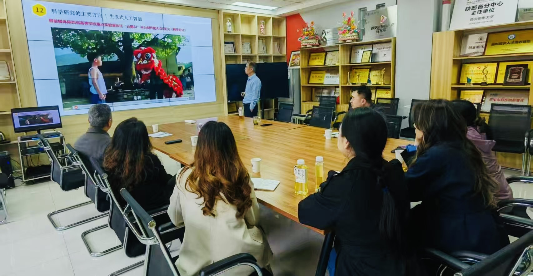 西安邮电大学数字艺术学院院长闫兴亚教授对到访一行表示热烈欢迎,并全面介绍了学院整体建设发展、专业布局结构、人才培养成果及未来发展规划,系统展示了学院在数字艺术领域的办学特色、学科优势与建设成效。随后,数字媒体艺术系主任王永涛以专业建设为核心,分享了学院依托学校工科优势,构建“技术+艺术+创意”三位一体人才培养体系、推进课程体系重构与产教深度融合的实践经验。其AI赋能艺术创作、实战项目驱动教学的特色模式,得到我院教师的高度认可与广泛共鸣。交流座谈中,我院教师代表围绕课程设置、实践教学、考核评价机制、学生管理模式等关键内容深入提问,王永涛主任结合建设经验逐一细致解答。双方聚焦AI短剧创作、虚拟制作课程建设、专业优化调整、学科发展方向等核心议题展开深度研讨。