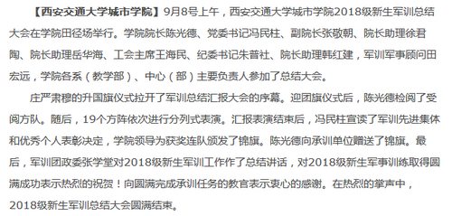 陕西省教育厅门户网站对我院2018级新生开学典礼暨军训活动进行了报道。