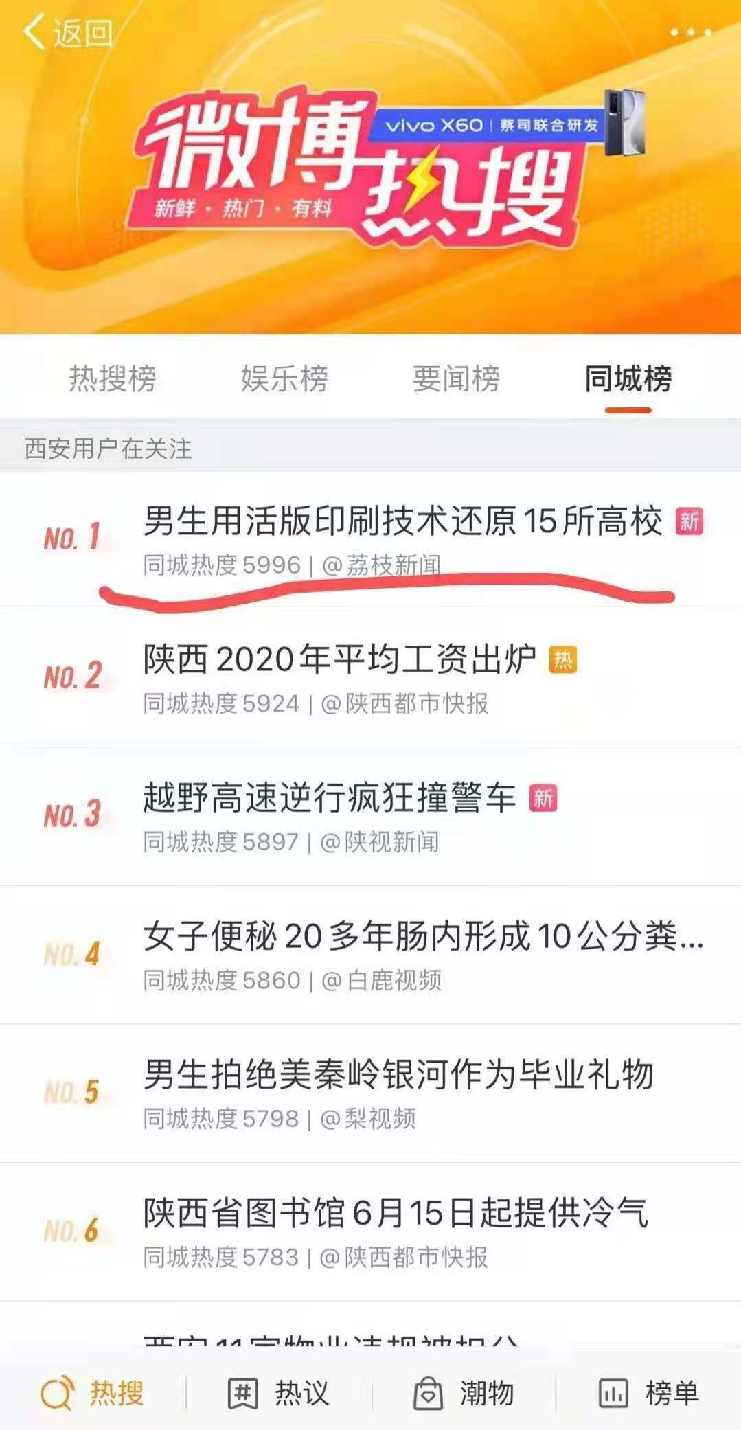 近日,人民网、中国青年报、中国日报中文网等知名媒体官方微博及搜狐视频客户端报道了我院艺术系大四学生李一帆用活版印刷制作高校明信片。据悉,该作品是李一帆同学的毕业作品。他以西安15所大学标志性建筑为元素,结合活版印刷技艺制作高校明信片,希望借毕业设计,向大家传达优秀传统技艺。截至目前,该学生携其毕业作品的报道已经登上同城热搜第一名。