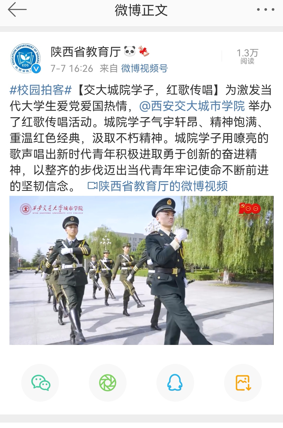 【陕西省教育厅微博】交大城院学子红歌传唱