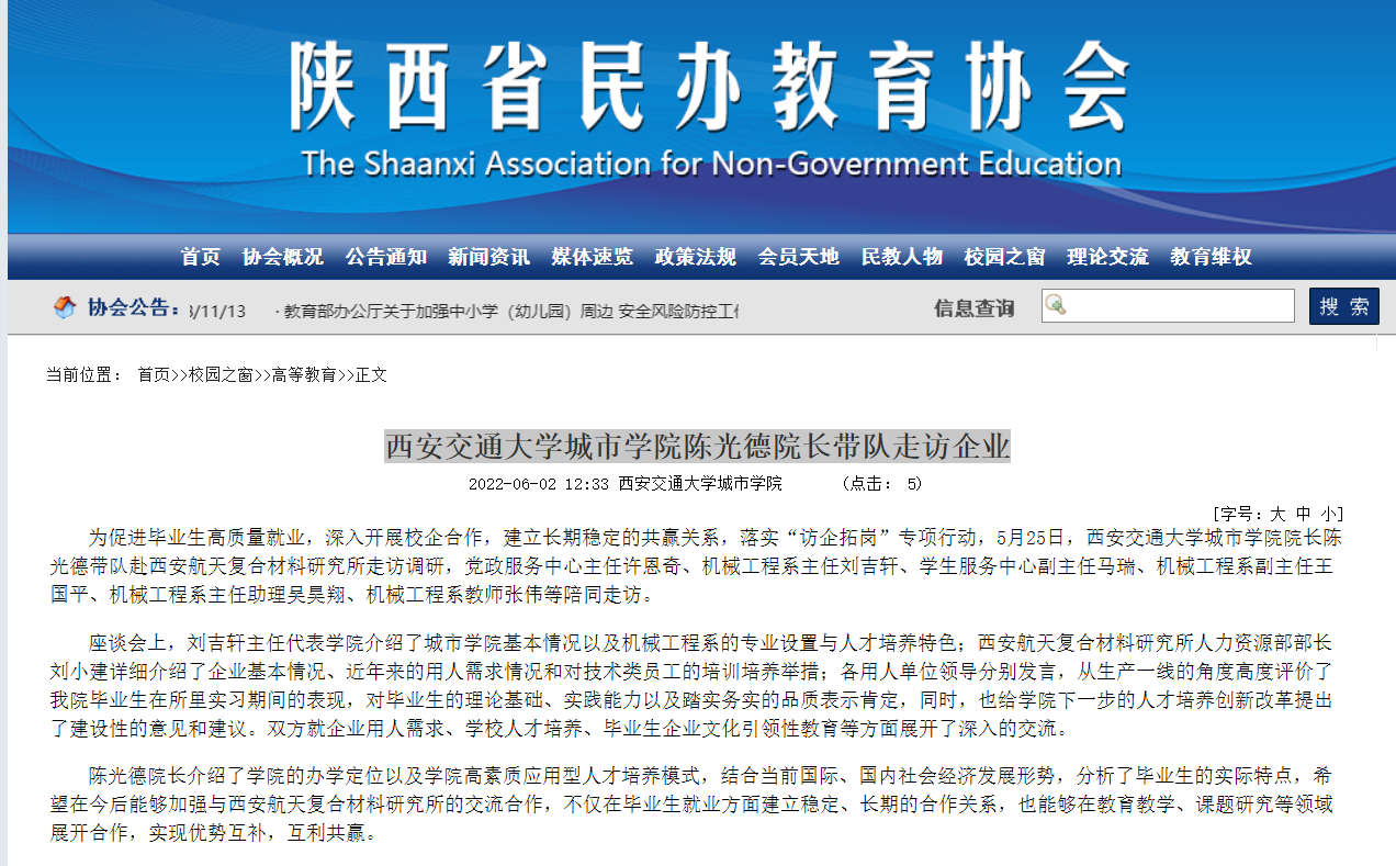 近日,陕西省民办教育协会报道了学院陈光德院长带队走访企业,具体内容及链接如下: