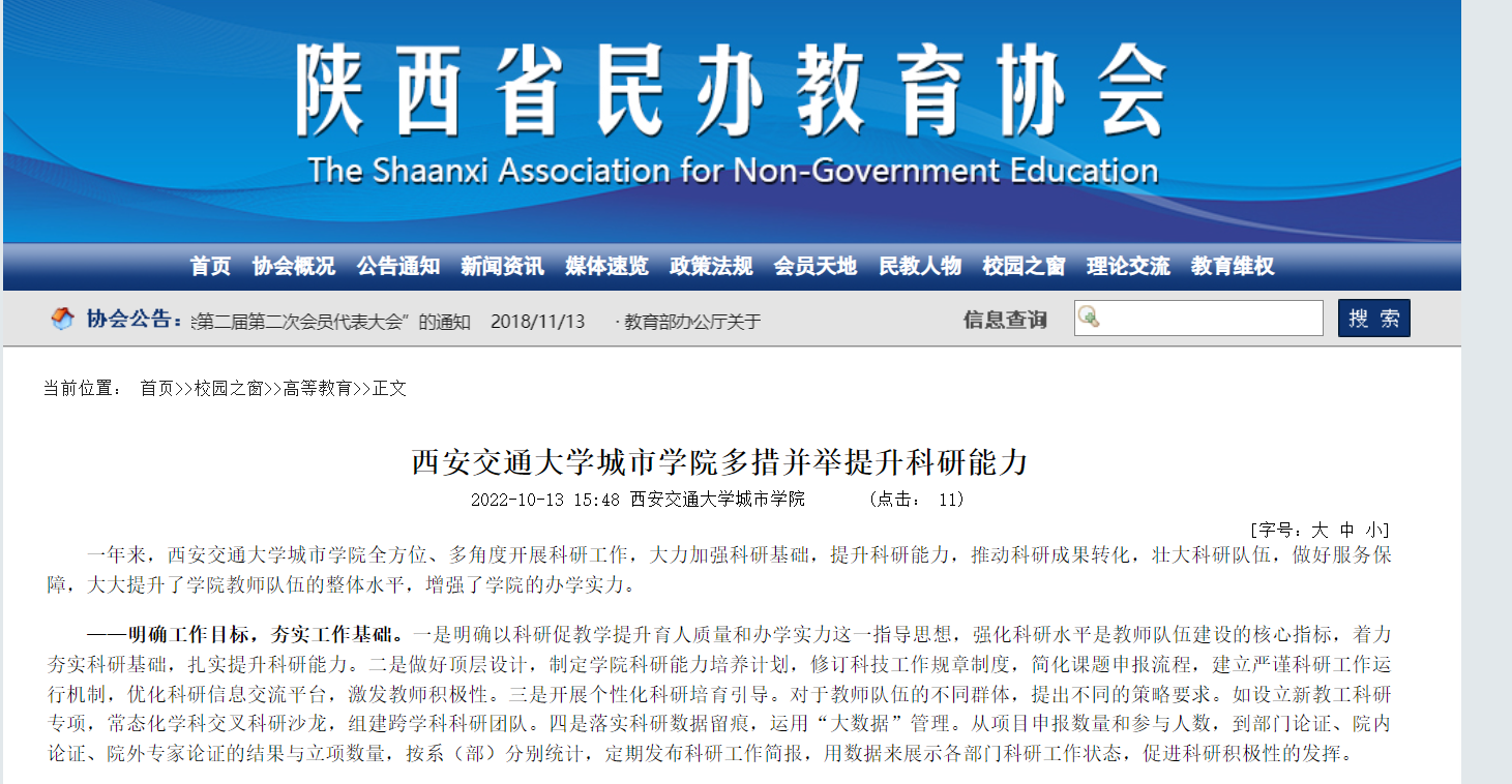 近日,陕西省民办教育协会报道了学院科研工作相关内容,具体链接和内容如下: