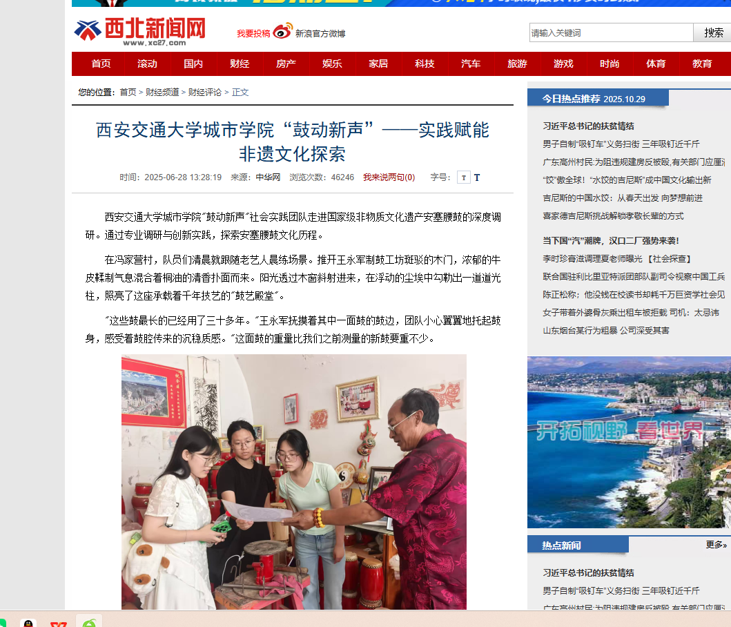 近日,西北新闻网对我校学子暑期“三下乡”社会实践活动进行了报道。