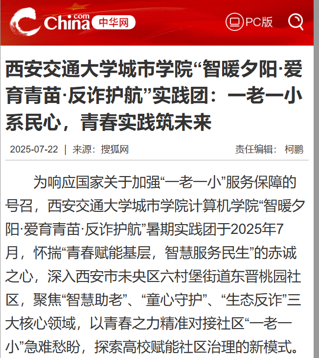 近日,中华网对我校学子暑期“三下乡”社会实践活动进行了报道。