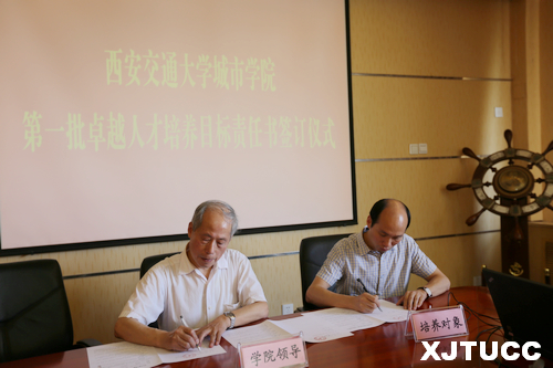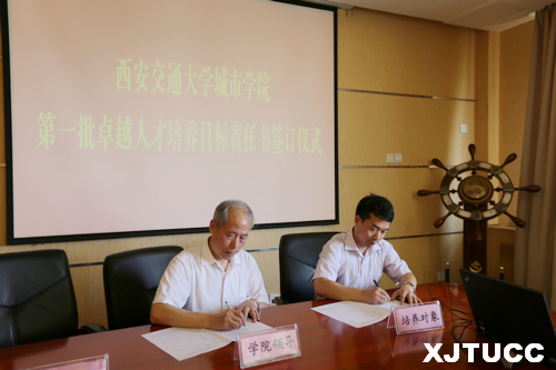 6月5日下午,西安交通大学城市学院在行政楼508会议室举行首批“卓越人才”培养目标责任书签订仪式。学院副院长崔杜武、院长助理徐君陶、相关单位负责人及首批培养对象参加签订仪式。签订仪式由院长助理徐君陶主持。
