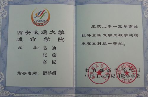 2013年陕西赛区参加本科组竞赛的共有628支队伍,西安交通大学城市学院是唯一一所荣获本科组全国一等奖的非公办类高校,并创学院历年学科竞赛最好成绩。另外还获本科组陕西省一等奖2个,陕西省二等奖3个。