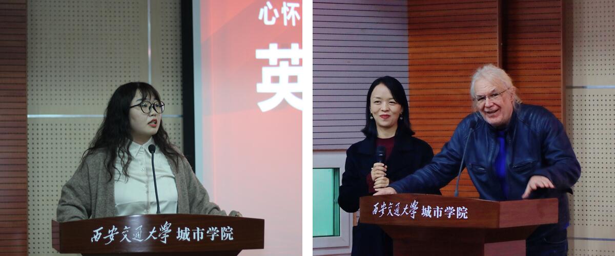 谢皖吉老师进行全英文致辞,她流利的发言给同学们极大的鼓舞。她寄语大家“Nothing is impossible to a willing heart.”,希望大家在追求梦想的道路上坚持不懈、全力以赴;外教John与国际班学生用进行了问答互动,寄语同学们要扎实学好专业课知识,做到知行合一,用真本领创造属于自己的未来。