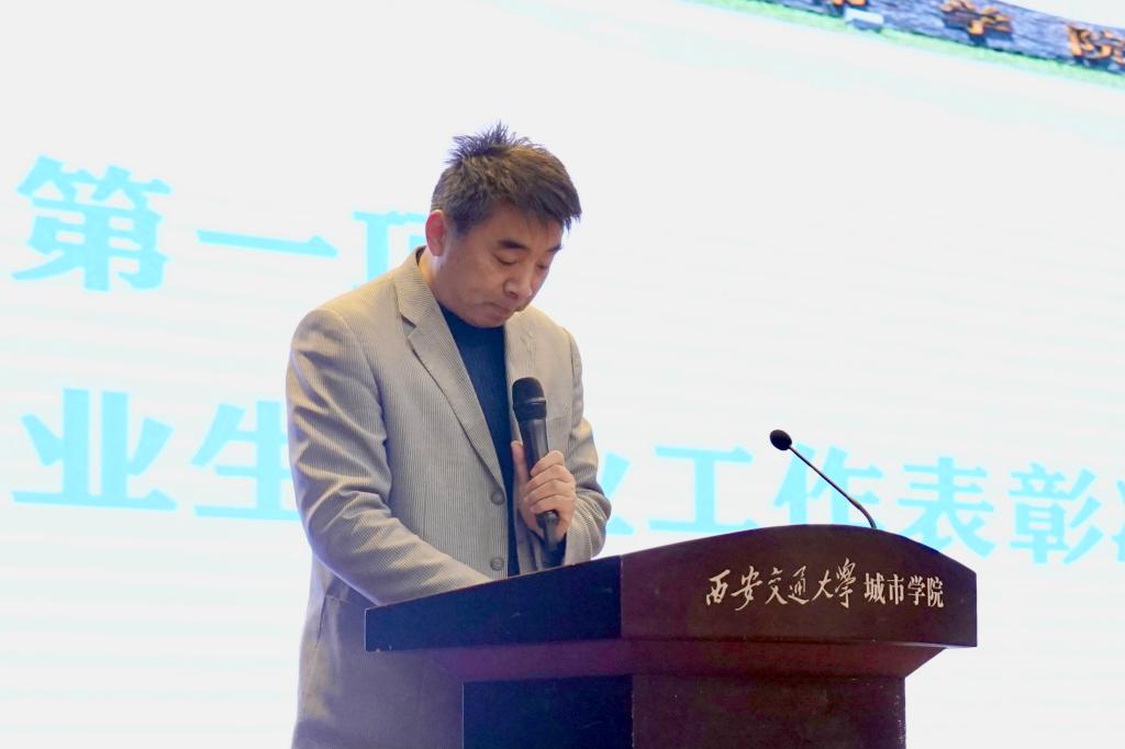 首先朱旭副院长宣读《西安交通大学城市学院关于表彰2021届毕业生就业工作先进集体及先进个人的决定》,对在2021届毕业生就业工作中表现突出的集体和个人进行了表彰。院领导向获奖集体和先进个人颁发奖牌、证书及奖品。