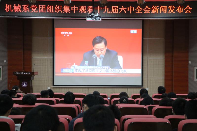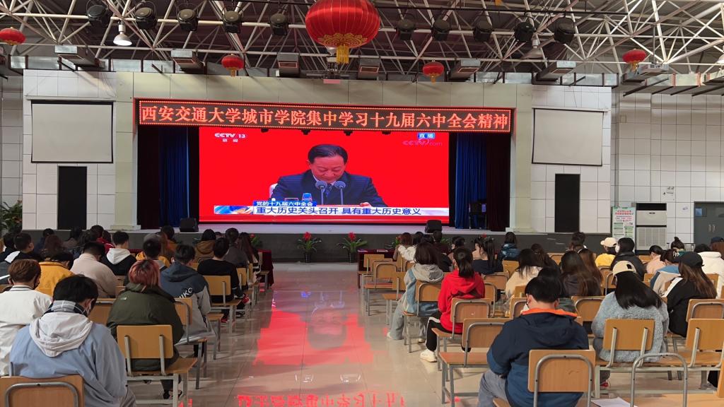 11月8日至11日,中国共产党第十九届中央委员会第六次全体会议在北京召开,会议听取和讨论了习近平受中央政治局委托作的工作报告,审议通过了《中共中央关于党的百年奋斗重大成就和历史经验的决议》,审议通过了《关于召开党的第二十次全国代表大会的决议》。12日上午10:00中共中央就介绍和解读中共十九届六中全会精神举行新闻发布会。西安交通大学城市学院师生以党支部为单位观看了直播。