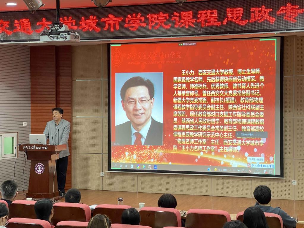 为进一步推动课程思政在学院高质量发展,西安交通大学城市学院教师发展中心于4月13日下午召开课程思政专题报告会。会议由副院长朱旭教授主持,西安交通大学国家级教学名师王小力教授作了主题报告,思政部主任梁军教授发表了讲话。教师发展中心主任史冬梅、数学教学部主任张世梅、计算机系副主任许大炜及40余位后备名师教师代表在教一楼F100参会,各系部通过腾讯会议在线上参会。