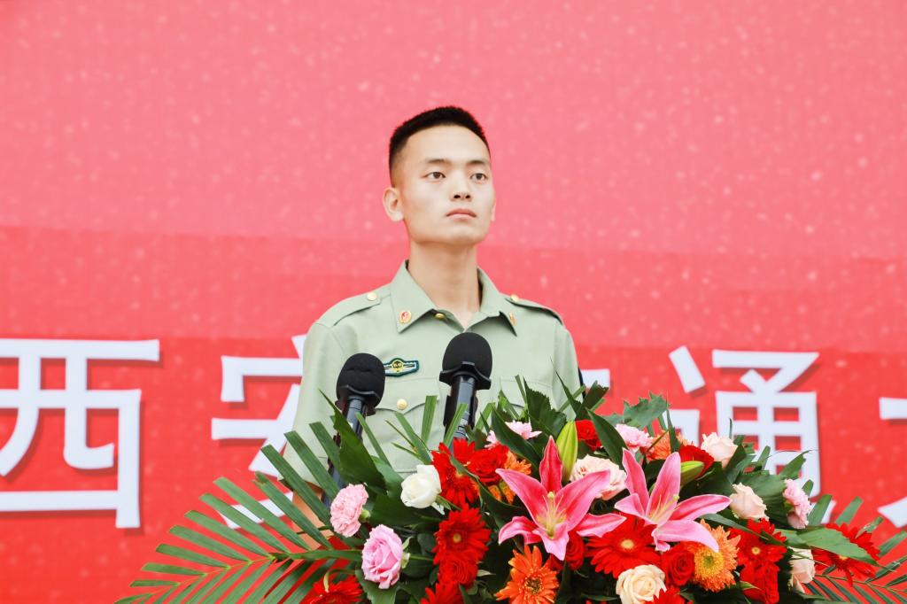 新生家长代表丁涛女士发表了深情寄语,她希望新生们一要坚守初心,保持热爱,做一个有理想、有目标的奋斗者;二要挑战自我,敢于突破,做一个勇拼搏、攀高峰的逐梦人;三要自律守信,做一个知敬畏、懂感恩的正直人。希望新生们朝着自己的理想努力前行!学业有成!