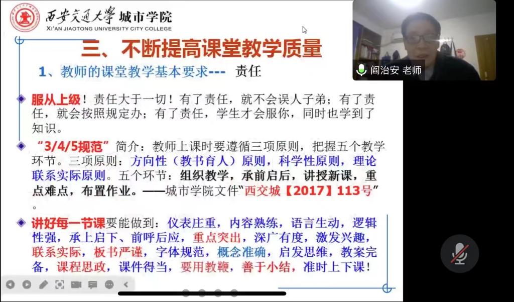 随后,教发中心组织了“西安交通大学城市学院教师课堂教学规范和要求”的学习与测试,通过测试,确保了教师们更好地对课堂规范相关政策知识的掌握,为后期开展教育教学工作奠定了基础。