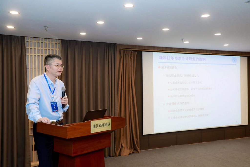 教育部高等学校教学指导委员会会计专业分委员会委员、教育部长江学者特聘教授、重庆大学计划财务处处长、重庆大学经济与工商管理学院辛清泉教授做了题为《新科技革命背景下国际化会计一流人才培养》的报告。辛教授提出新科技革命促使经济模式从规模驱动向质量驱动转变,由此对会计工作提出多维挑战,会计人才培养体系也因此亟须变革。并指出在新科技革命背景下,应该通过扩展学生知识图谱,培养与计算机人员协同作战能力,重视新科技革命背景下商业伦理与会计职业道德素养,注重培养学生的国际视野,培养以数据为基础擅于支撑商业决策的人才。