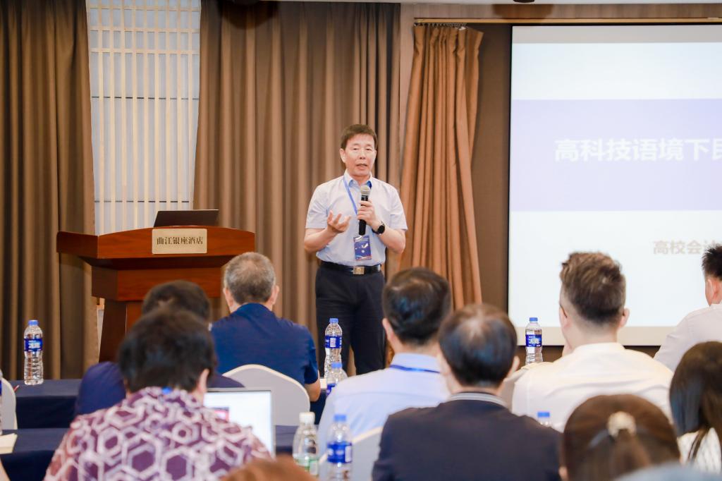 广东财经大学原校长、全国民办高校会计类一流专业建设联盟理事长、广东外语外贸大学南国商学院执行校长王华教授以《高科技语境下民办高校会计教育的高质量发展》为题做了报告。王教授介绍了科技发展趋势下企业科技创新与运用对会计人才的要求,提出围绕政策指南、以德树人、评价体系3个方面构建民办高校会计教育高质量发展的顶层设计,从能力、课程、师资、教学手段和评价体系5个维度构建以chatgpt为代表的科技发展冲击下高校应用型会计人才培养体系。
