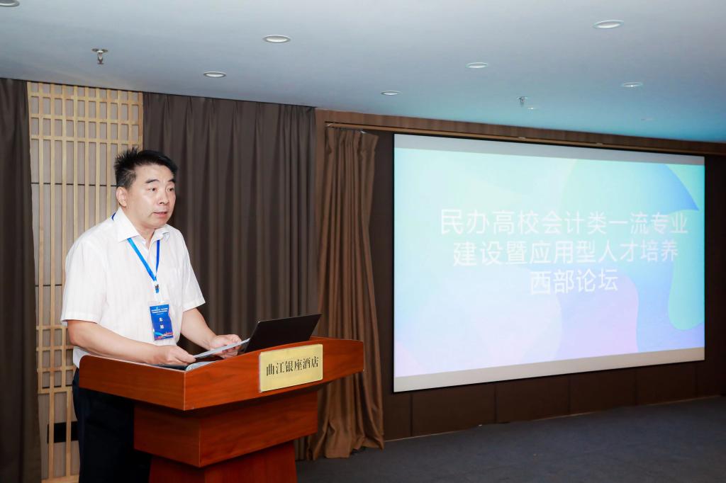财政部全国会计名家、全国会计专业研究生教育指导委员会顾问、西安交通大学管理学院教授、西安交通大学城市学院管理系主任张俊瑞做了题为《民办高校会计类一流专业建设:现状、挑战与展望》的报告。张教授首先对我国会计类本科专业建设进行简要回顾。随后从师资队伍、课程体系、特色课程、实验室建设、实习基地建设、科研成果、学生就业分析方面分析了民办高校会计类一流专业建设现状,结合现状提出当前所面临的挑战,并针对民办高校会计类一流专业建设提出具体实施措施。
