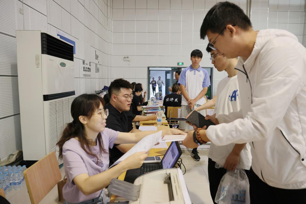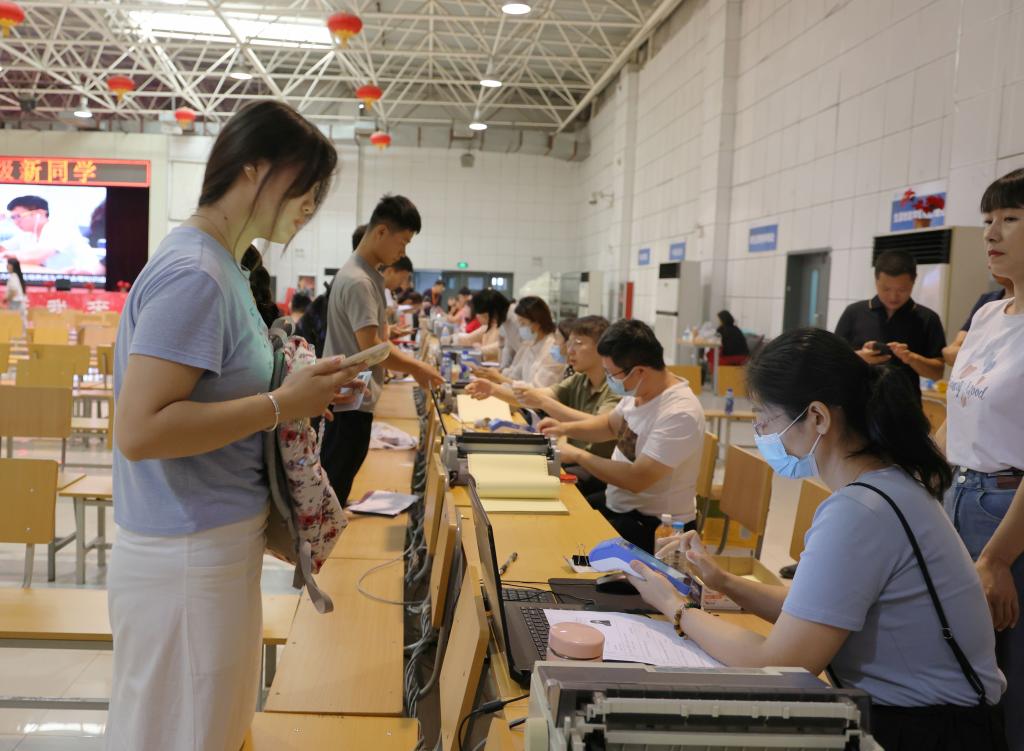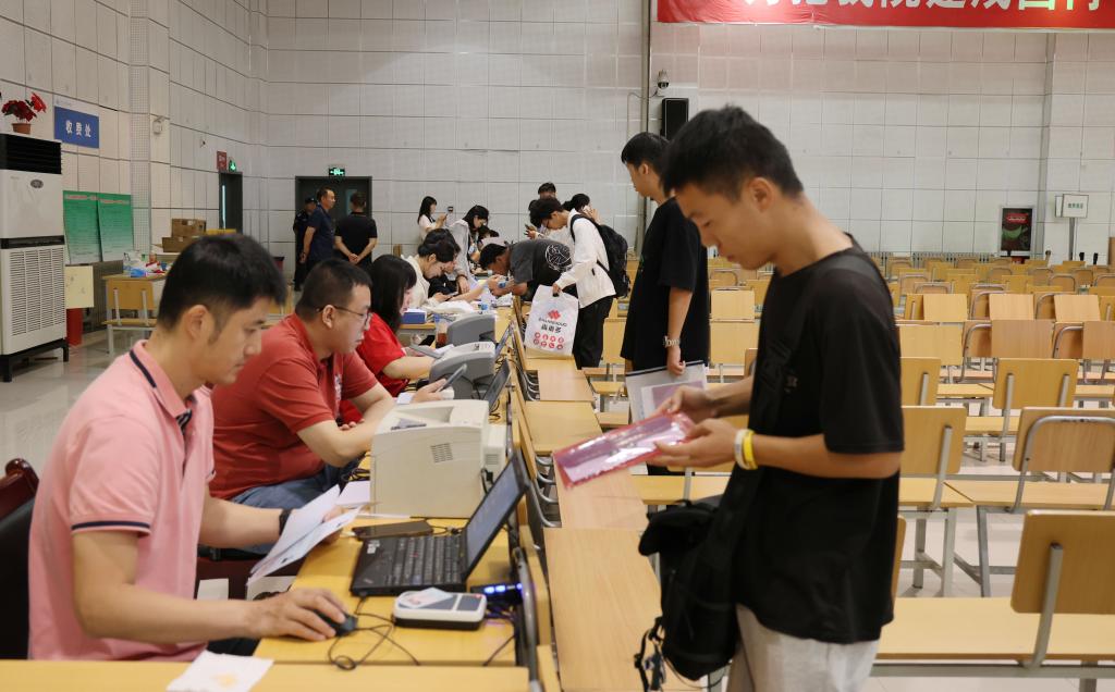 报到现场,设置了流程咨询、资格审核、学费缴纳、助学贷款办理等环节,并且开设绿色服务通道,安排志愿者全方位协助新生完成报到各项事宜。