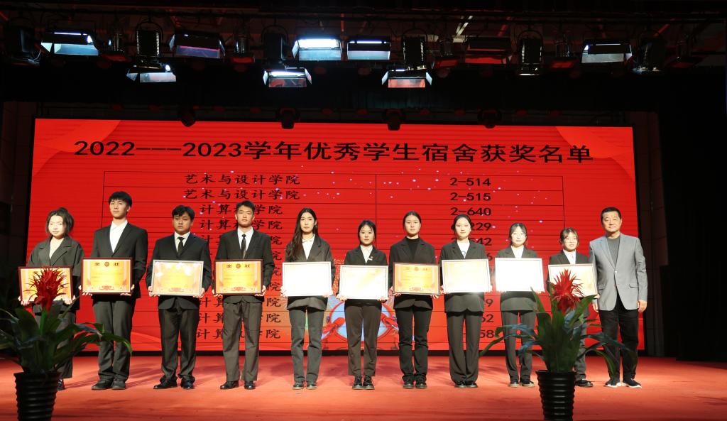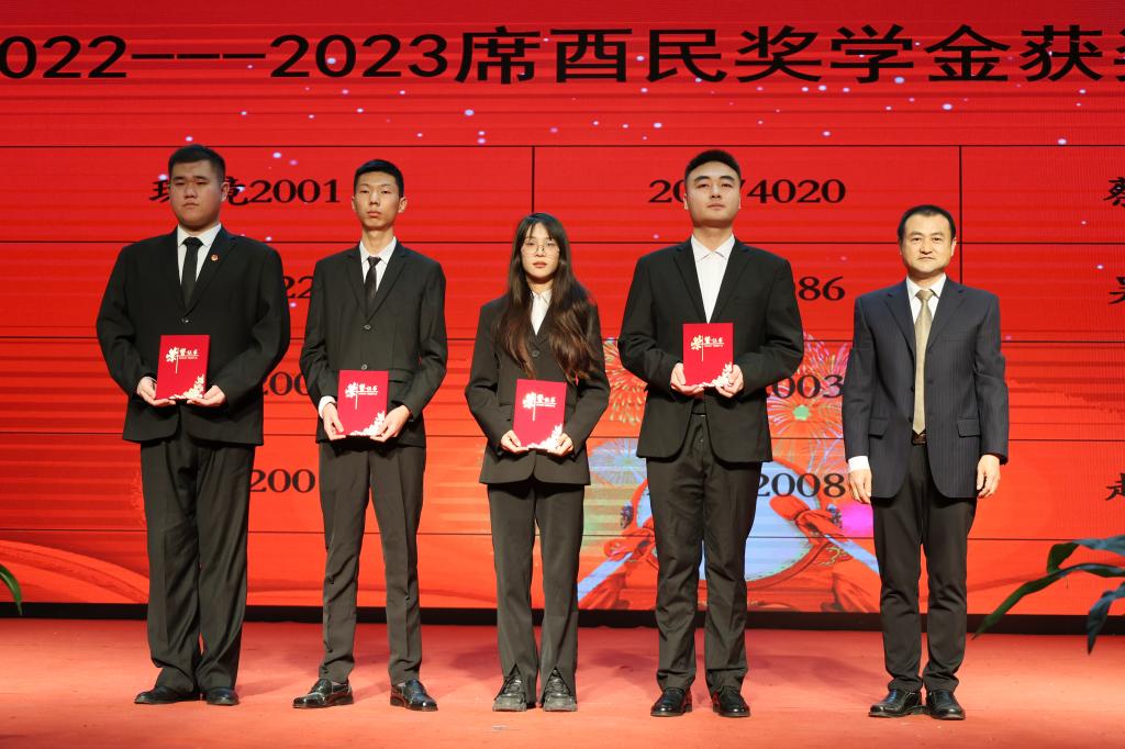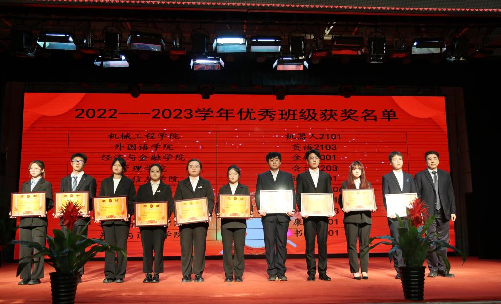伴随着嘹亮的国歌声,表彰会正式拉开序幕。党委书记张爱萍宣读了2022-2023学年优秀学生、先进集体的表彰决定,向毛睿豪等6名学生授予“优秀学生标兵”称号,向段潇楠等4名同学授予“优秀学生标兵提名奖”称号,隆重表彰了毛睿豪等10名国家奖学金获得者、王佳敏等248名“国家励志奖学金”获得者,授予周亚楠等1863名学生“优秀学生”称号、贾一宁等248名学生“优秀学生干部”称号、田雨阳等182名学生“社会活动积极分子”称号、左欣雨等251名学生“学习进步奖”称号、胡思诺等10名学生“志愿服务与公益奖”称号、吾嘉辉同学“校园网络安全卫士”称号、赵晓鹏等4名学生席酉民“创业与竞争力”新星奖,同时授予会计2004班等42个班级“优秀班级”称号、1号公寓313宿舍等61间宿舍“优秀宿舍”称号、“弈术辩论协会”等12个社团“优秀社团”称号。随后,与会领导分别为获奖个人和集体颁奖。