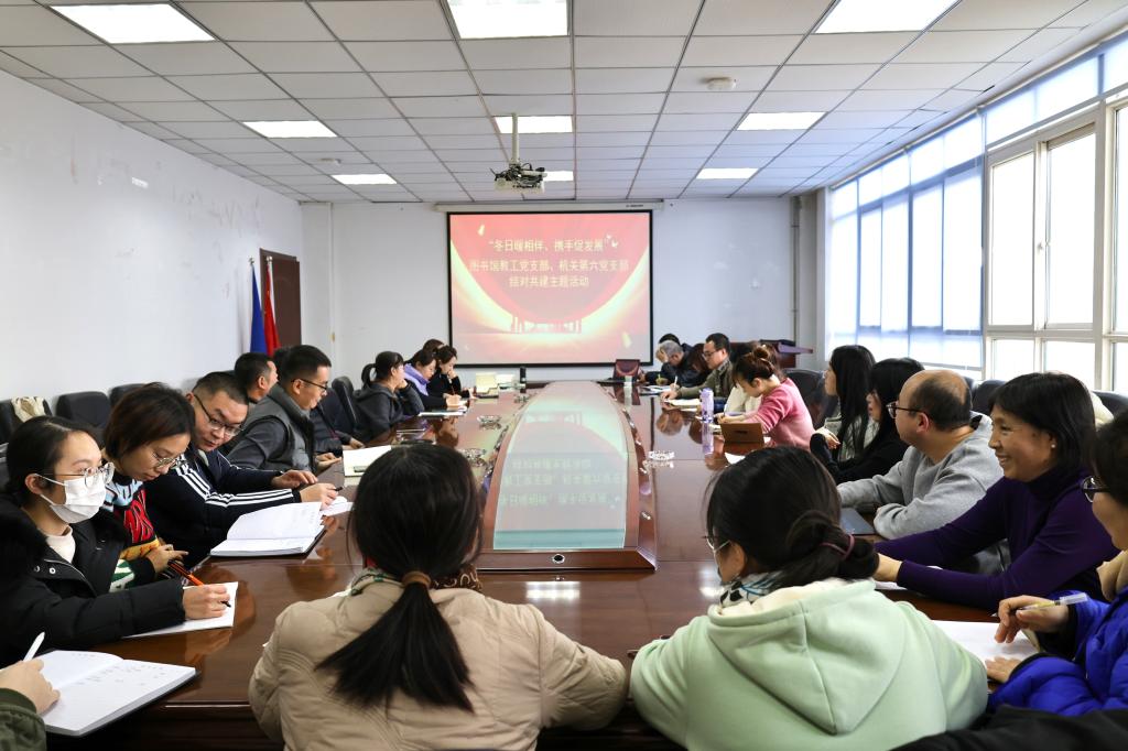 为加强基层党组织建设,更好地促进教工党支部之间的工作交流互动,12月22日下午,图书馆档案馆联合党支部、机关第六党支部共同开展主题为“冬日暖相伴、携手促发展”的结对共建活动。党委委员陈光德校长、冀祥工会主席、图书馆档案馆联合党支部及机关第六党支部全体党员参加了活动。