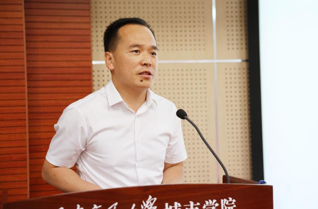 陈光德校长代表学校向景辉教授表示欢迎。他指出,景辉教授受聘为学校兼职教授,对艺术与设计学院和土木建筑工程学院的人才培养和科学研究等是非常好的契机,对于推进学校产学研深度融合具有积极作用。城市学院致力走好走实产学研结合的路子,优化人才培养工作,鼓励学生深入一线接受实习和训练,提高实践能力;提倡教师充分了解社会需求,精准对接政府、企业需求,加快推进科研成果转化。他希望师生们能利用好此次机会,勤学好问、密切交流、深化合作,为更好地服务社会贡献高校力量。