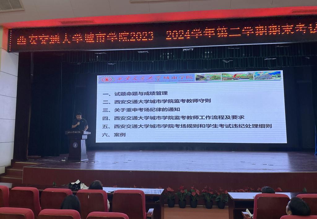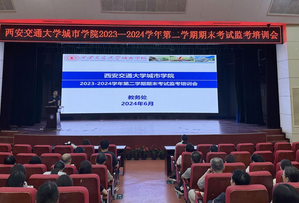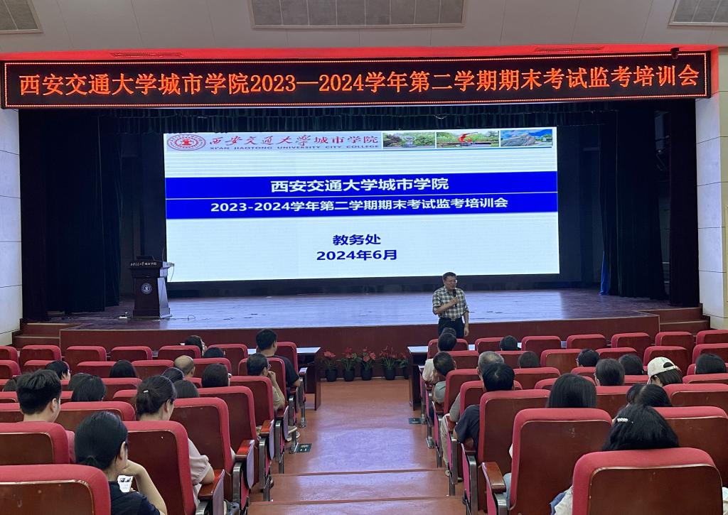 为进一步规范考试管理,严肃考试纪律,确保本学期期末考试工作顺利开展,6月20日,教务处在教二报告厅举办了2023-2024学年第二学期期末考试监考培训会,副校长朱旭、教务处处长唐玉海、全体监考老师、各学院教学秘书及教务处相关人员参加了此次会议,会议由唐玉海处长主持。
