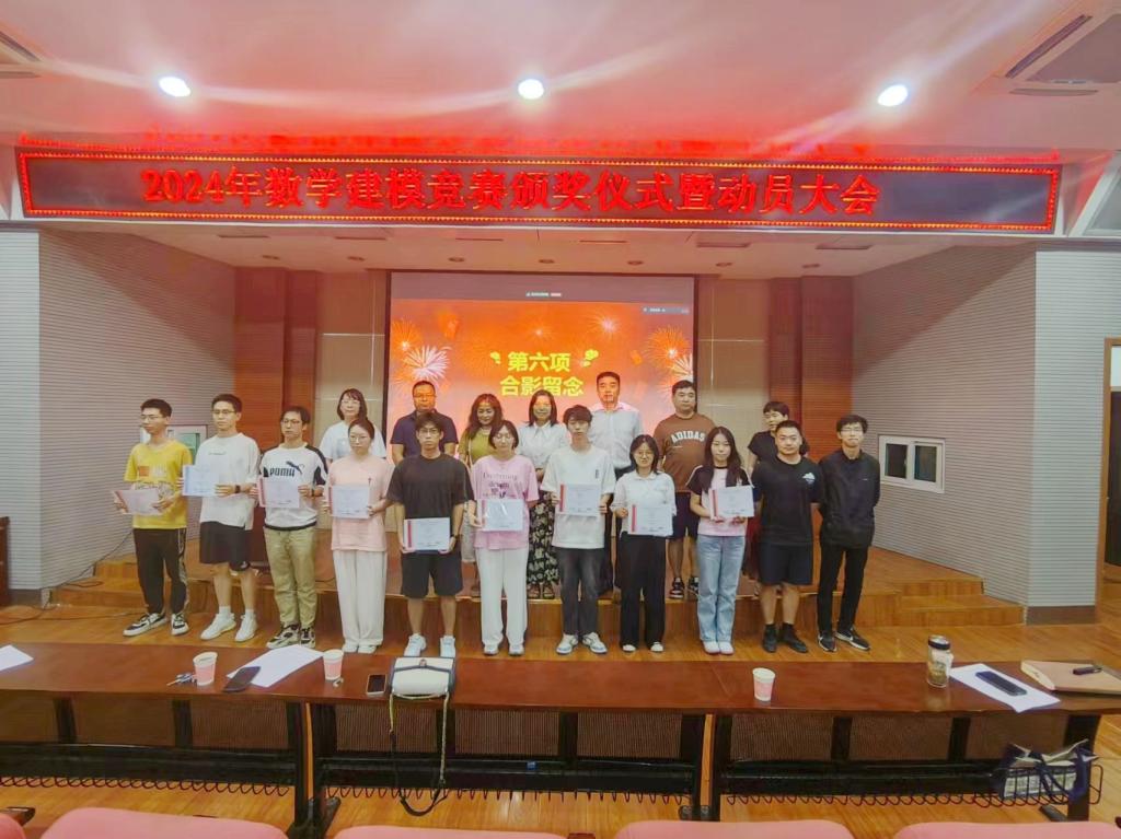 会议伊始,任菊成主任助理宣读了2024年美赛获奖学生名单,朱旭副校长为获奖学生颁发获奖证书并合影留念。在2024年美国大学生数学建模竞赛中,我校共获H(二等奖)奖5项、S(三等奖)奖26项。随后,建模竞赛优秀获奖队伍代表卜嘉昊、李润佳同学分别从“建模介绍、建模分工、建模收获、建模注意事项”等方面分享了自己的参赛历程与获奖经验。