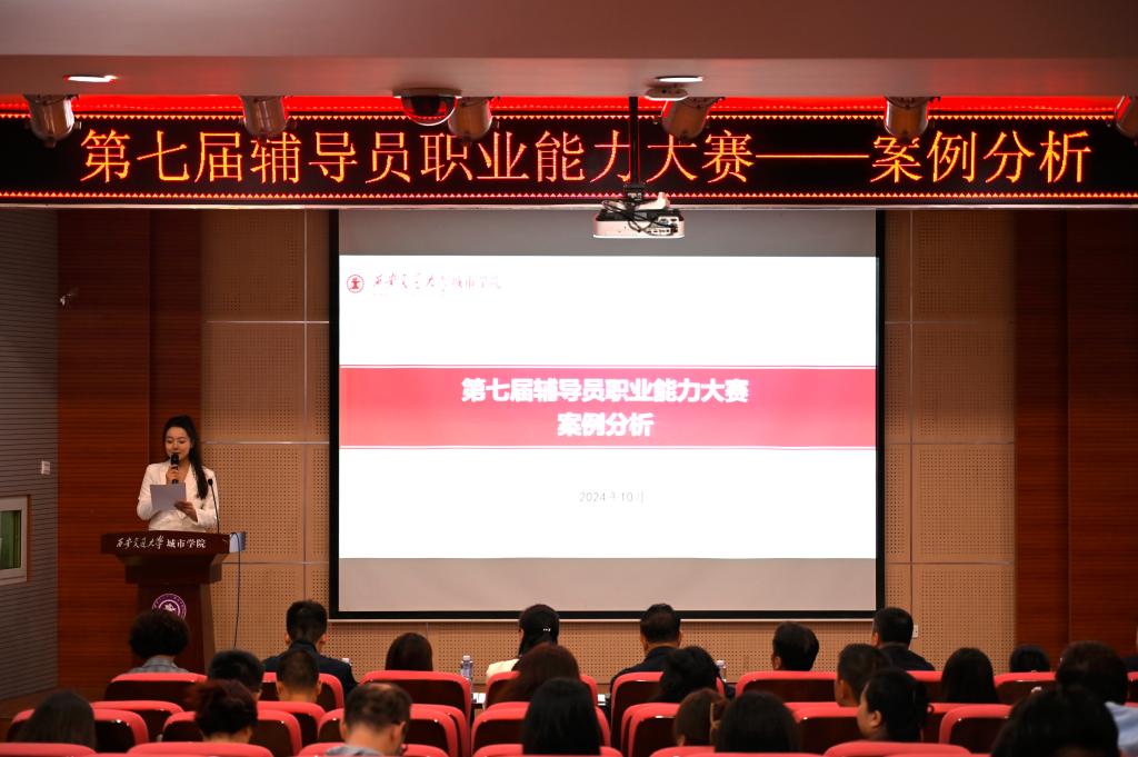 为深入贯彻落实全国教育大会精神,进一步提升辅导员队伍的职业能力和专业素养。10月18日,西安交通大学城市学院举办第七届辅导员职业能力大赛复赛之案例分析比赛。经济与金融学院院长张文科、管理学院常务副院长郭关科、机械工程及自动化系主任兼教工党支部书记李娜娜及学生工作处处长辛红伟莅临现场观摩指导。党委工作部副部长米梅、行政人事部副部长张妍妍、招生就业处副处长吴昊翔、学生工作处副处长姚敏、张福全担任评委,各二级学院学生工作负责人及全体辅导员到场观摩。