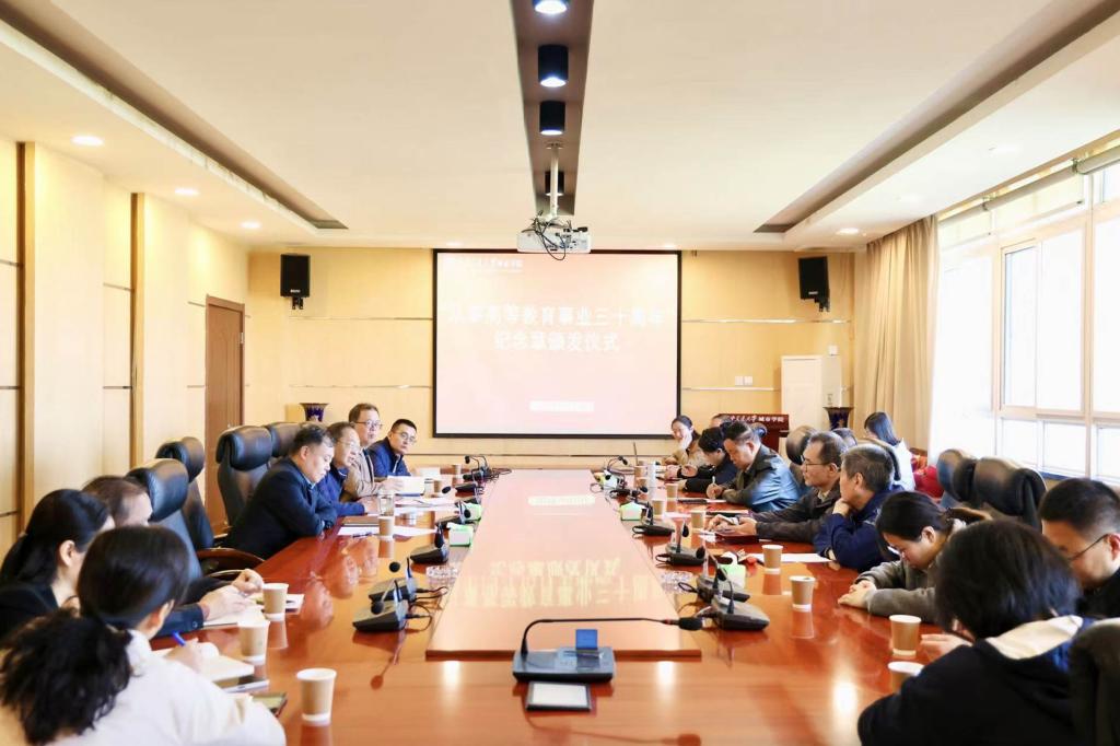 为大力弘扬教育家精神,营造尊师重教的良好风尚,10月23日下午,西安交通大学城市学院在行政楼608会议室举办“从事高等教育事业三十周年”纪念章颁发仪式。校长严红昌,党委书记张爱萍,工会主席许恩奇,行政人事部部长姬志国,教学科研部常务副部长杨宏霞,相关单位负责人、党支部书记、教职工代表出席仪式。仪式由党委书记张爱萍主持。