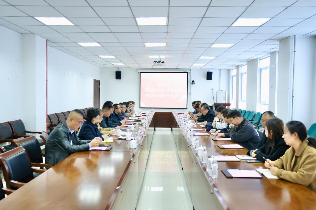 11月4日,西安建筑科技大学华清学院院长助理杨欣一行来校调研交流,双方就后勤管理工作进行座谈。副校长岳华海、建设与条件保障部部长马兆平、保卫处处长李凡昊、建设与条件保障部副部长张帅及相关负责老师参加座谈,座谈会由马兆平部长主持。