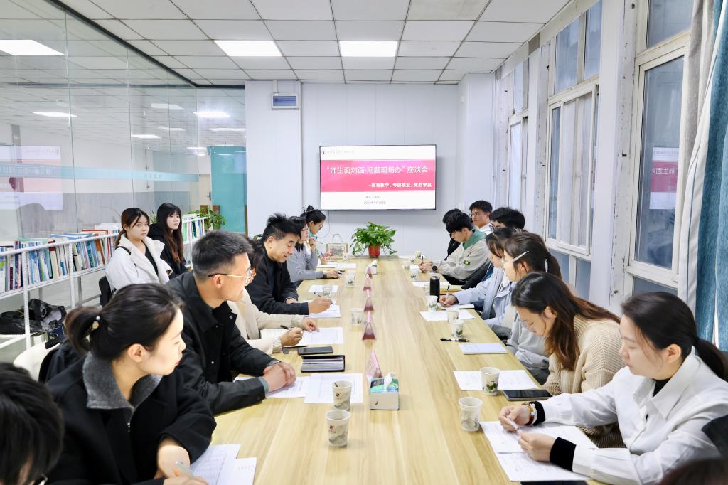 为进一步推进学生参与学校治理,更好地解决学生的困惑与问题,学校于11月20日下午在“一站式”学生社区一楼多功能厅召开“师生面对面,问题现场办”——教育教学、考研就业与学生资助座谈会。副校长朱旭、招生就业处处长成琳、教学科研部副部长康彦青、体育教学部副主任邓豪、学生工作处副处长姚敏、学生工作处教育管理科副科长吴江菊及15名各学院学生代表参加本次座谈会。座谈会由学生工作处副处长姚敏主持。