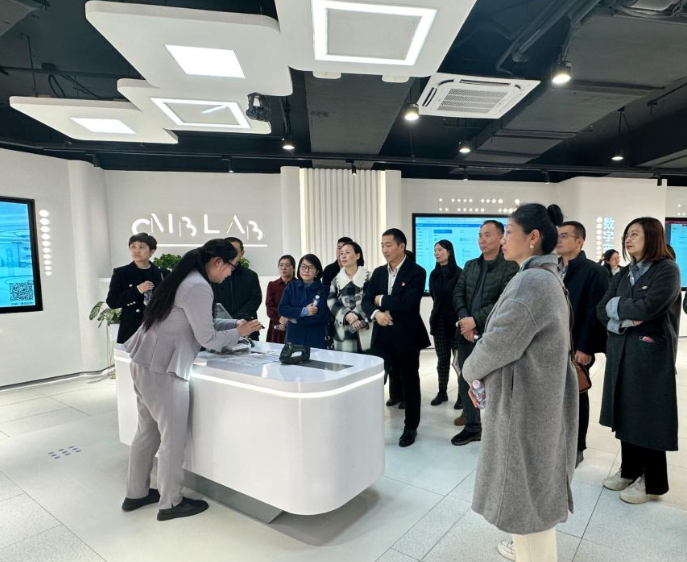 在招商银行西安分行,陈书荣副校长一行参观了数字金融展厅。通过工作人员的详细讲解与现场演示,学校一行人员详细了解了招商银行在数字化转型方面取得的成就以及多项金融创新服务,如基于大数据的风险控制技术、人工智能在客户服务中的应用等。每一项技术展示不仅是理论的阐述,更有实际操作的演示,使大家能够直观感受到金融科技的魅力与实际应用效果。