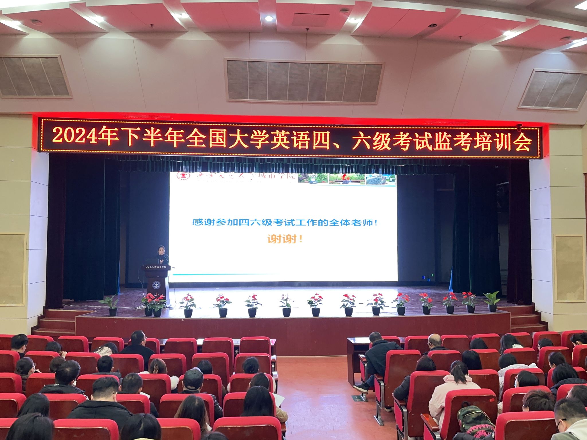 12月13日上午,西安交通大学城市学院在教二报告厅召开2024年下半年全国大学英语四、六级考试监考培训会。副校长朱旭、教学科研部常务副部长杨宏霞、全体四、六级考试监考教师、考务工作人员参加会议。会议由朱旭副校长主持。