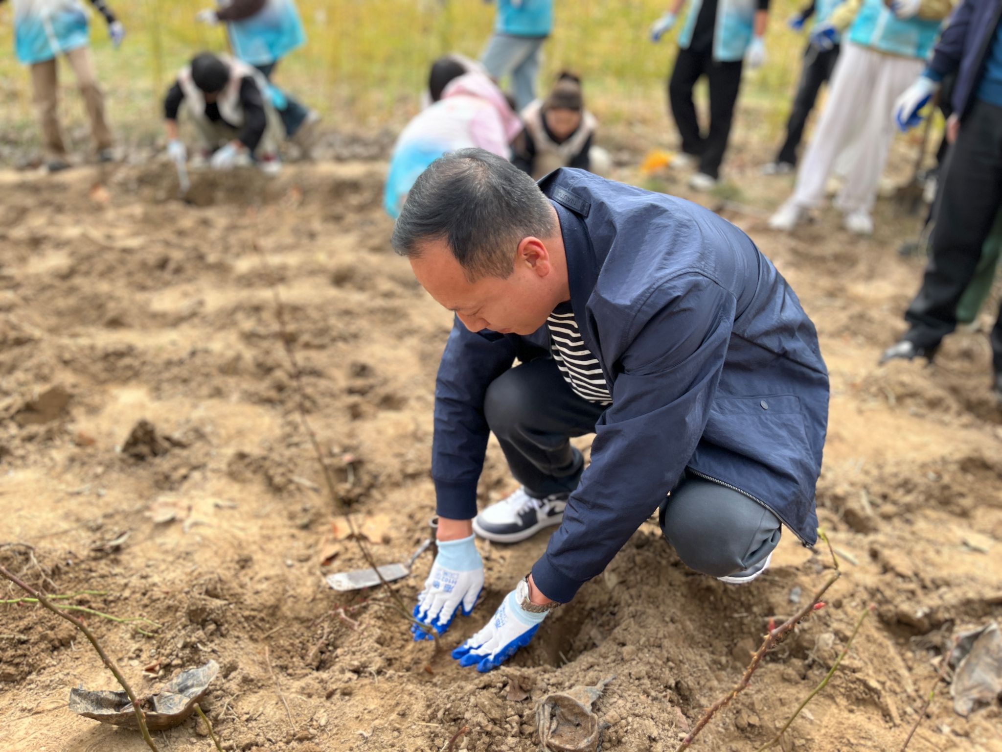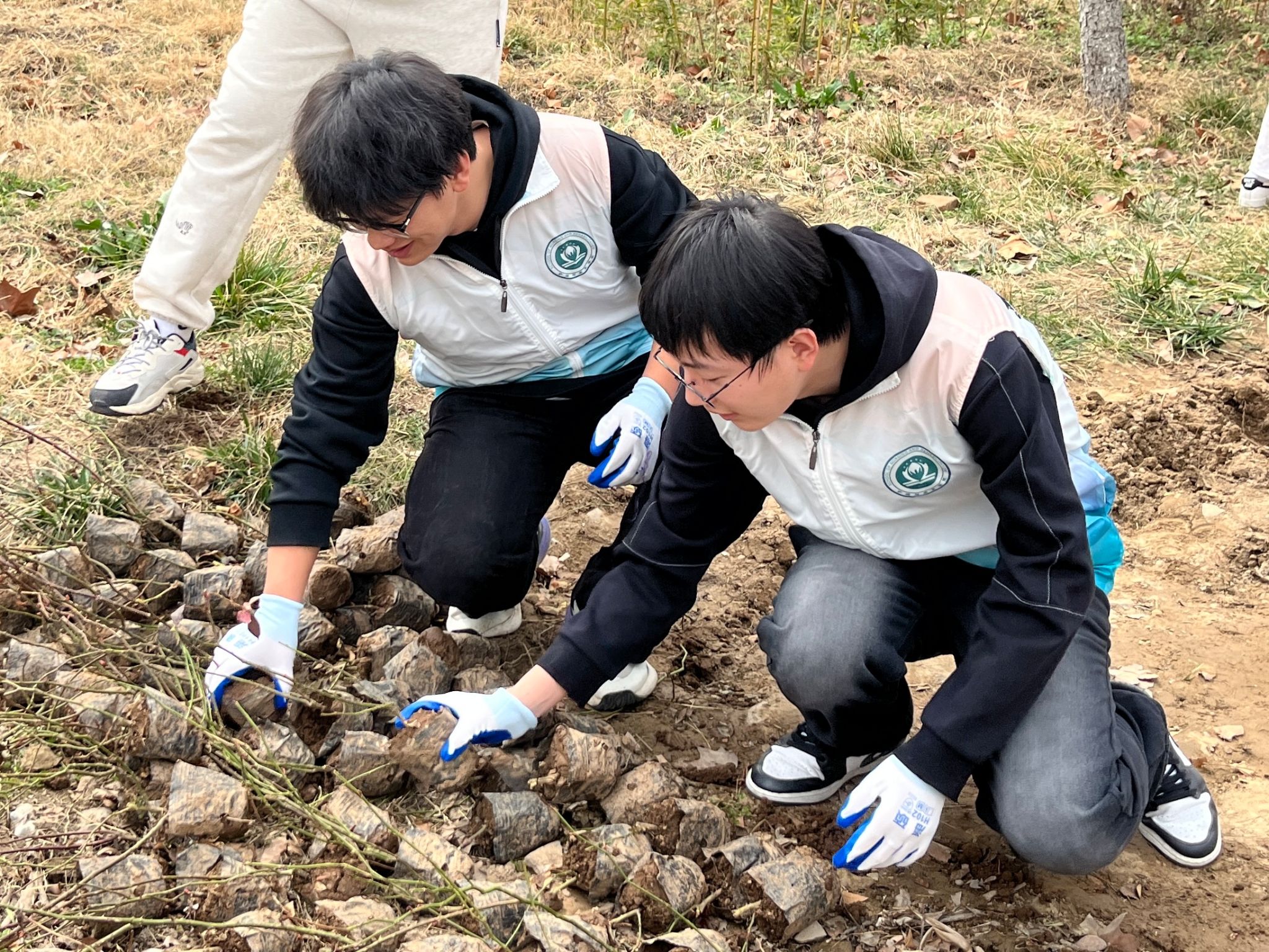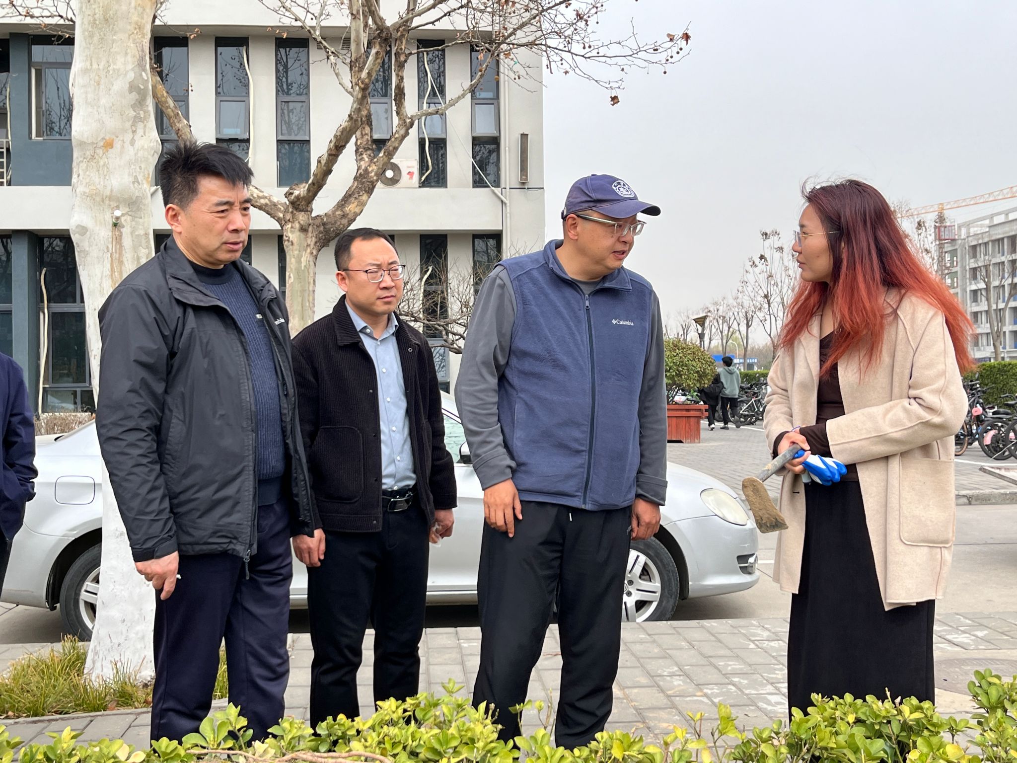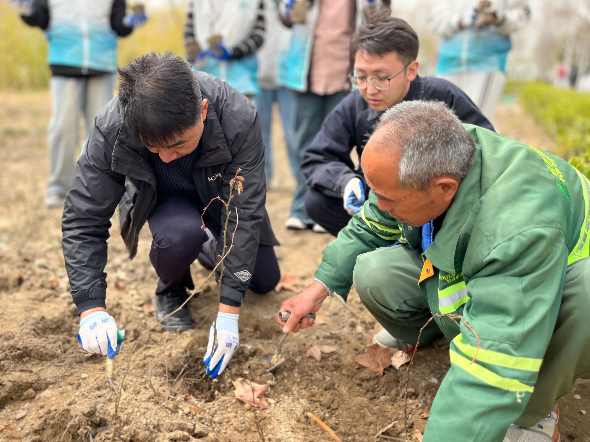 活动现场位于五号楼公寓前的种植区域。前期,学生志愿者们完成了翻土挖坑和种植规划,为种植的顺利开展奠定了基础。