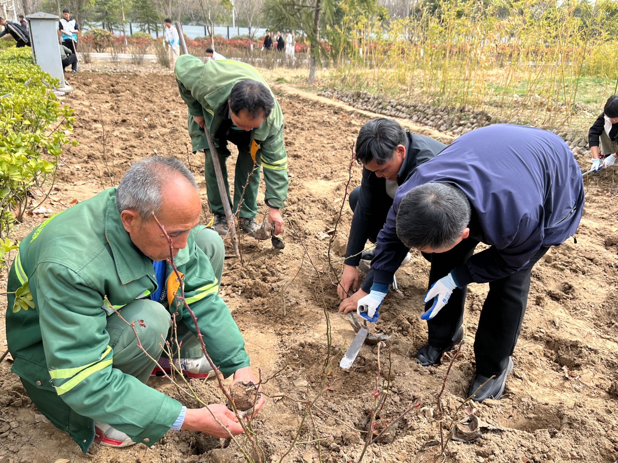 活动中,师生们分组协作,有条不紊地开展挖坑、培土、固苗等工作,将一株株月季花苗精心植入规划区域。新栽下的月季花苗不仅让学生们掌握了劳动技能,更让他们理解了绿色校园的内涵。