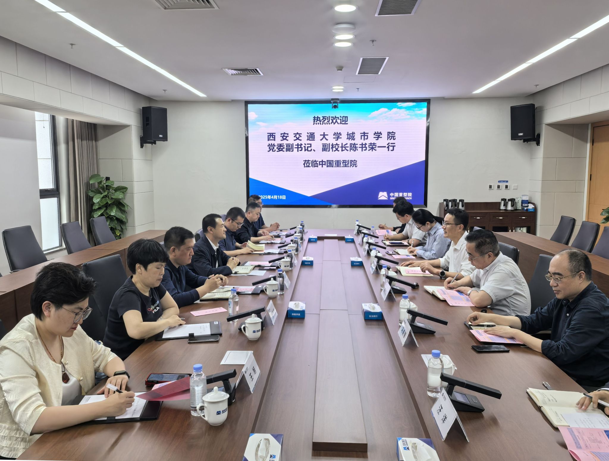 4月18日下午,西安交通大学城市学院党委副书记、副校长陈书荣,校长助理、行政人事部部长姬志国,智能制造与新能源学院院长牛海波,学生工作处处长辛红伟,通识教育学院常务副院长、未央区人大代表张世梅,智能制造与新能源学院副院长王国平,经济与管理学院副院长王旭一行赴中国重型机械研究院开展校地合作交流活动。中国重型机械研究院党委书记、董事长王社昌,党委委员、首席信息官、副总工程师薛红卫,党群工作部部长边舒雯等相关部门负责人接待我校一行。