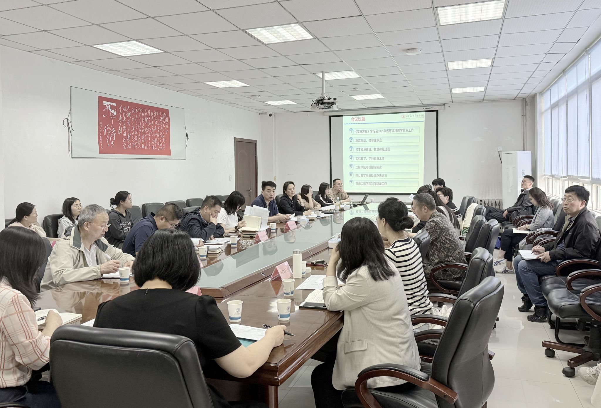 教学科研部副部长康彦青、部长助理冯鹏林分别就新增专业与微专业建设、校本资源与智慧课程开发、实验教学标准化、学科竞赛管理办法修订以及二级学院考核指标优化等工作进行了说明。与会人员围绕相关议题开展了讨论,为学校教学工作的高质量发展建言献策。